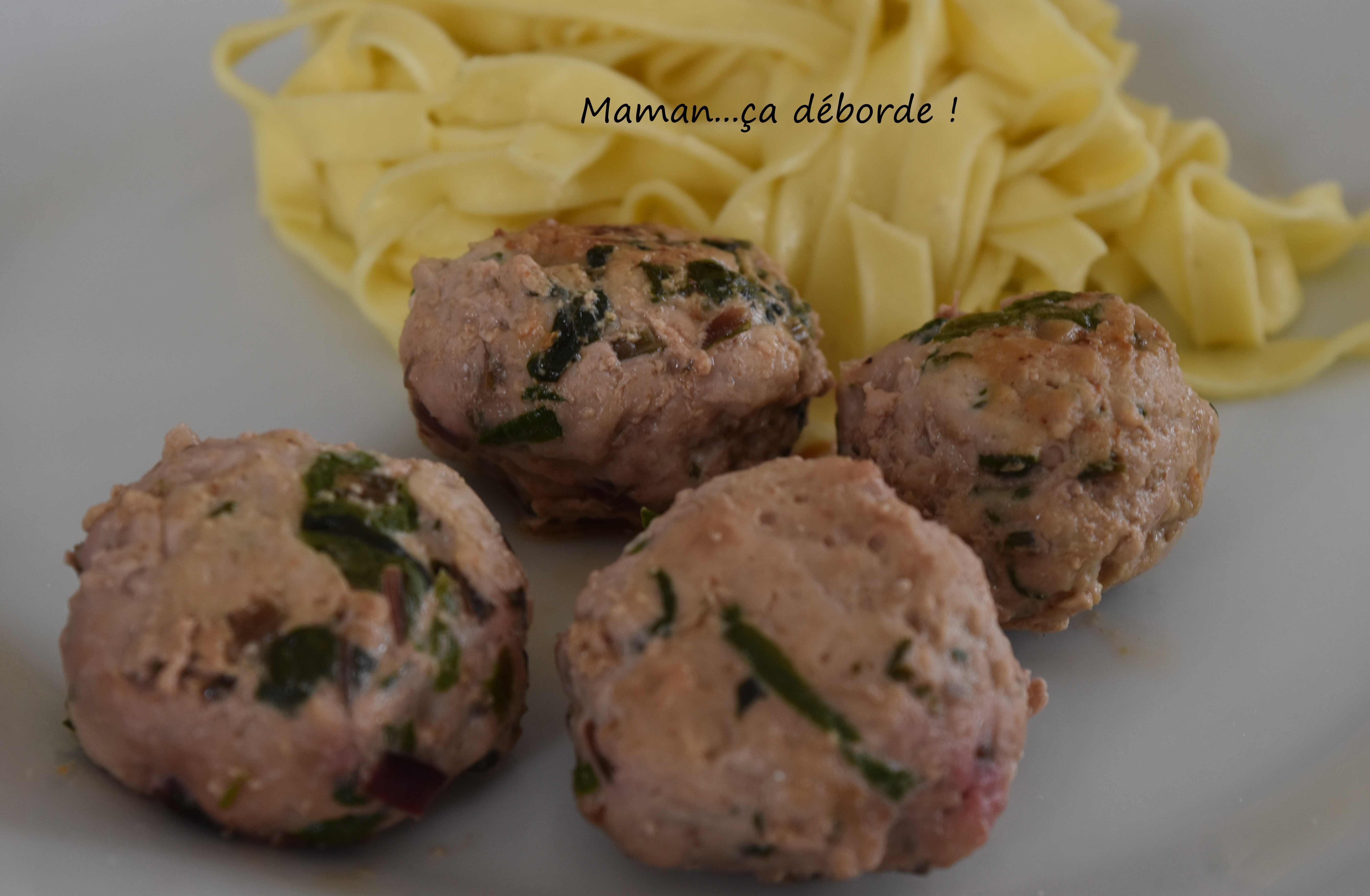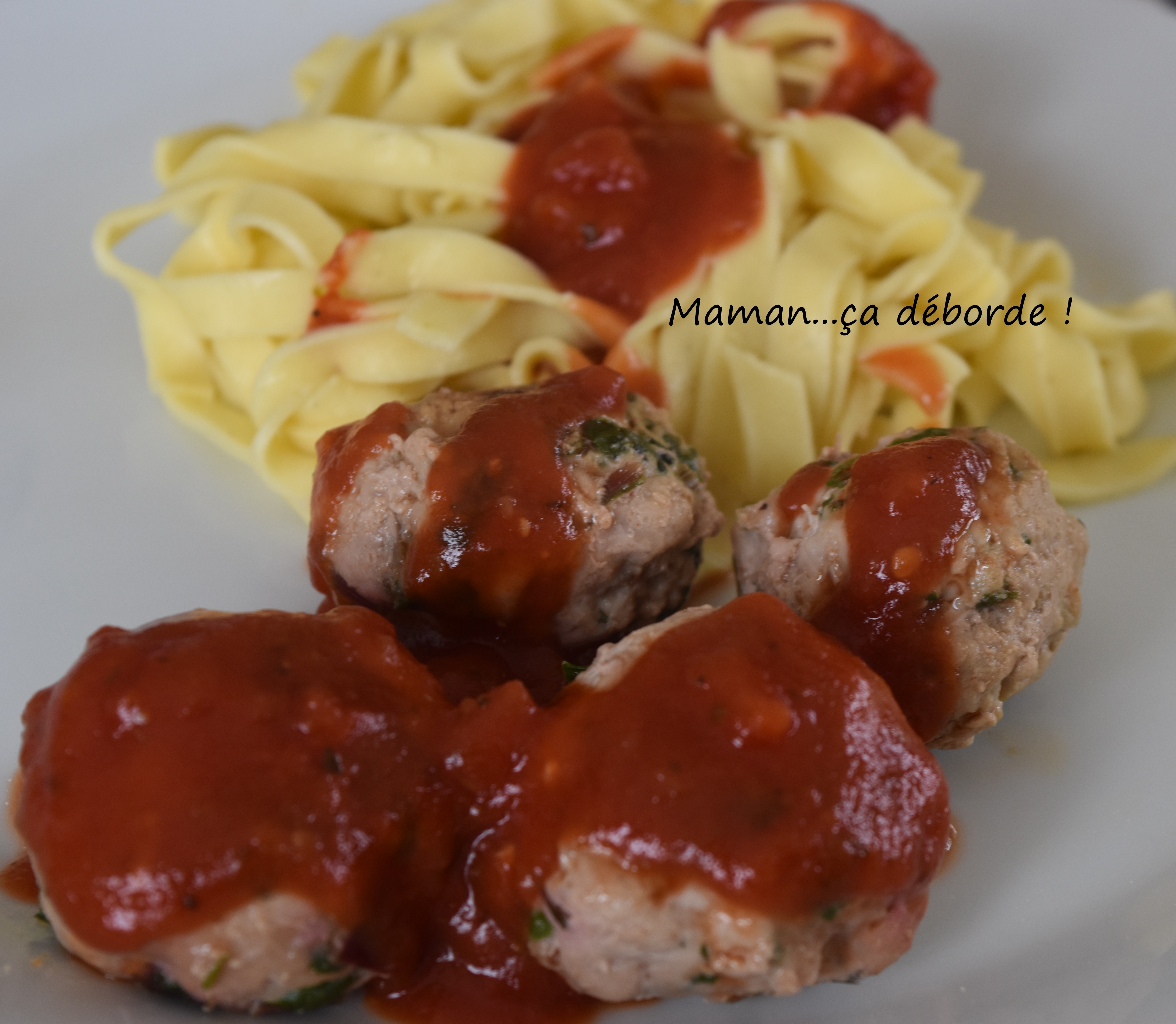 Je les ai accompagné de tagliatelles fraiches et d’une bonne sauce tomate maison.