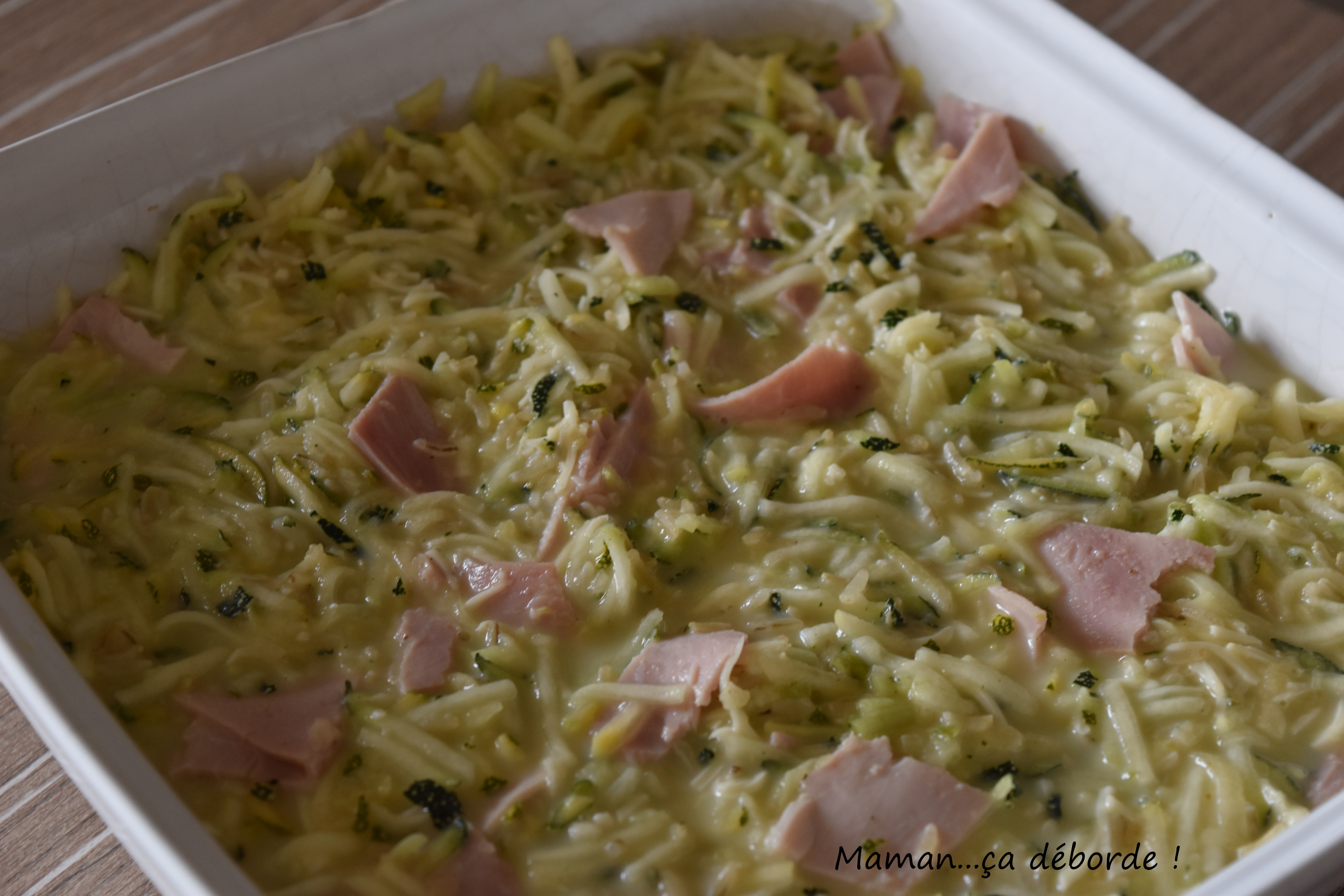 La courgettine est à l’origine une recette tupperware qui a été reprise par toute la blogosphère culinaire. En principe, la courgettine ne contient pas de jambon mais j’ai eu envie d’en faire un plat complet.