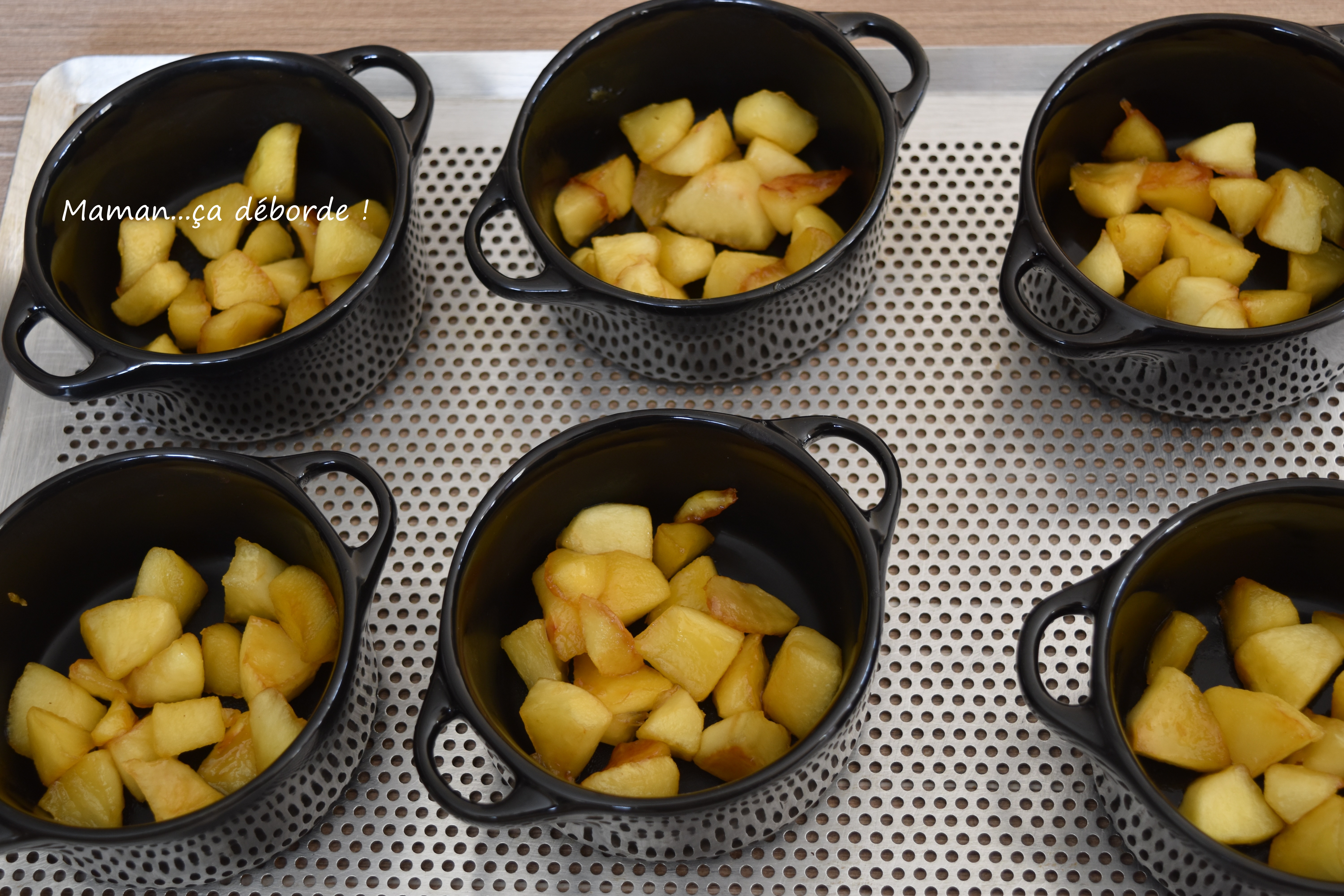 Repartissez les pommes dans 6 petites cocottes,