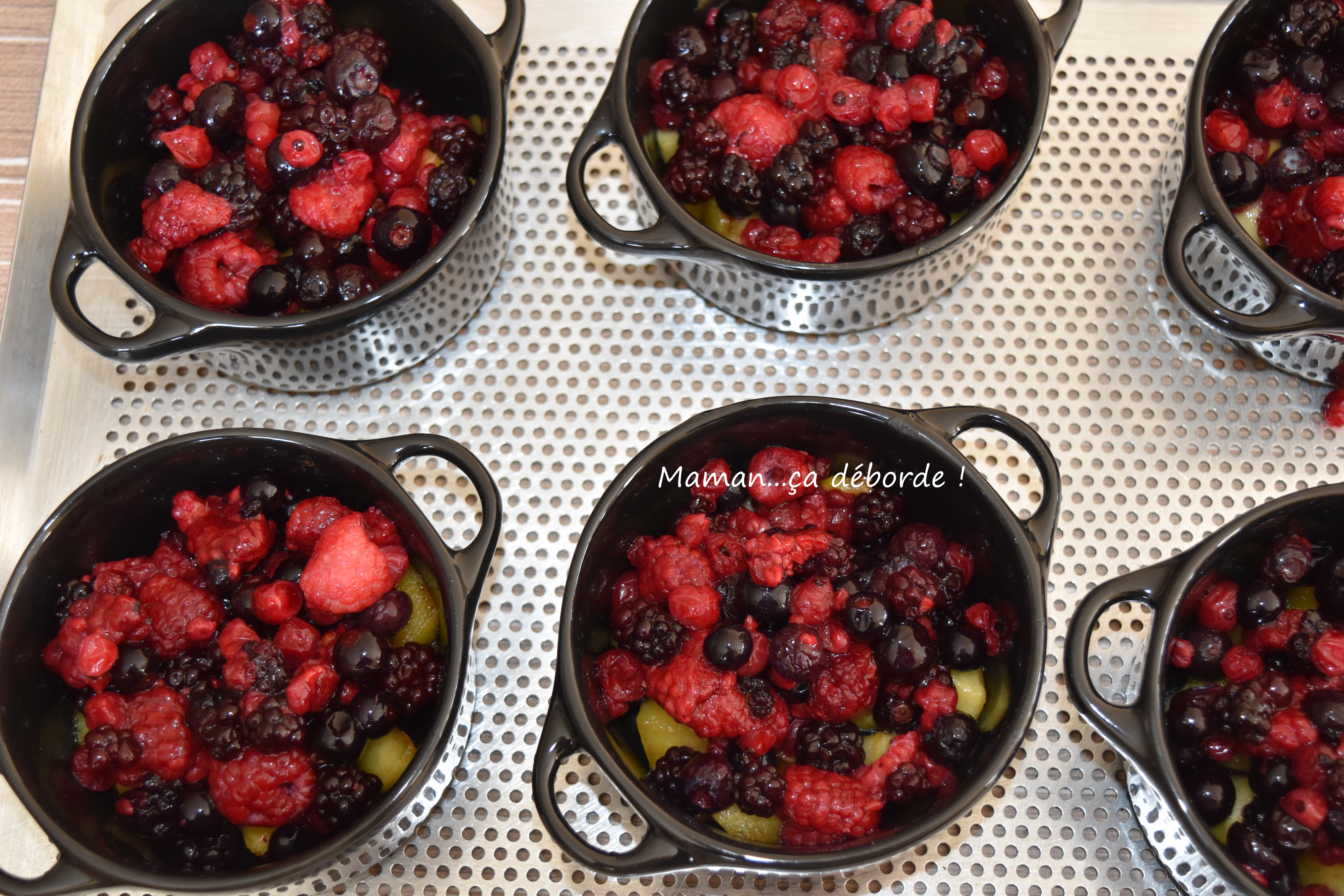 Je les réalise souvent aux pommes mais comme j’avais des fruits rouges à finir au congélateur j’ai vu là une bonne façon de donner un coup de pep’s à ce dessert fruité !