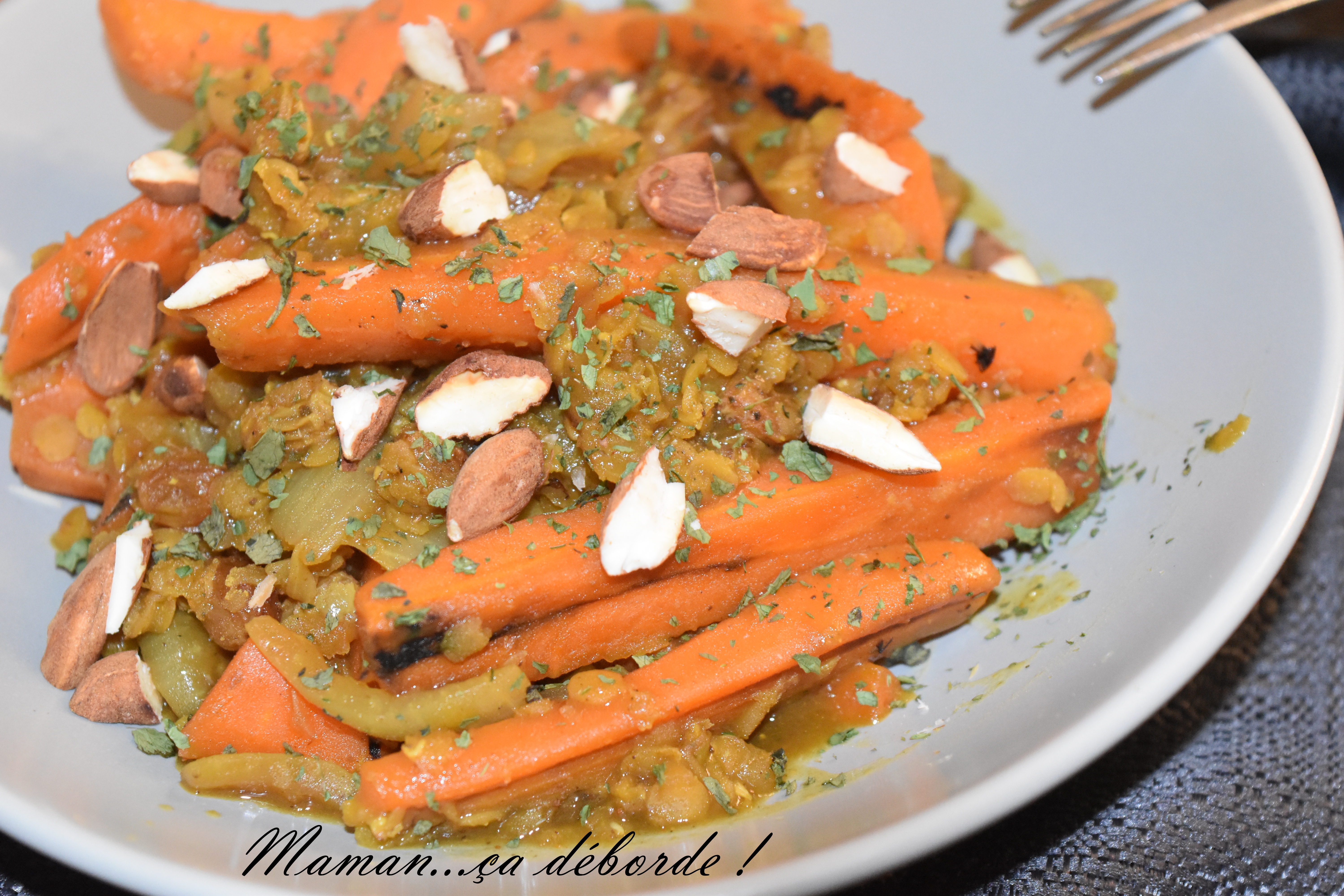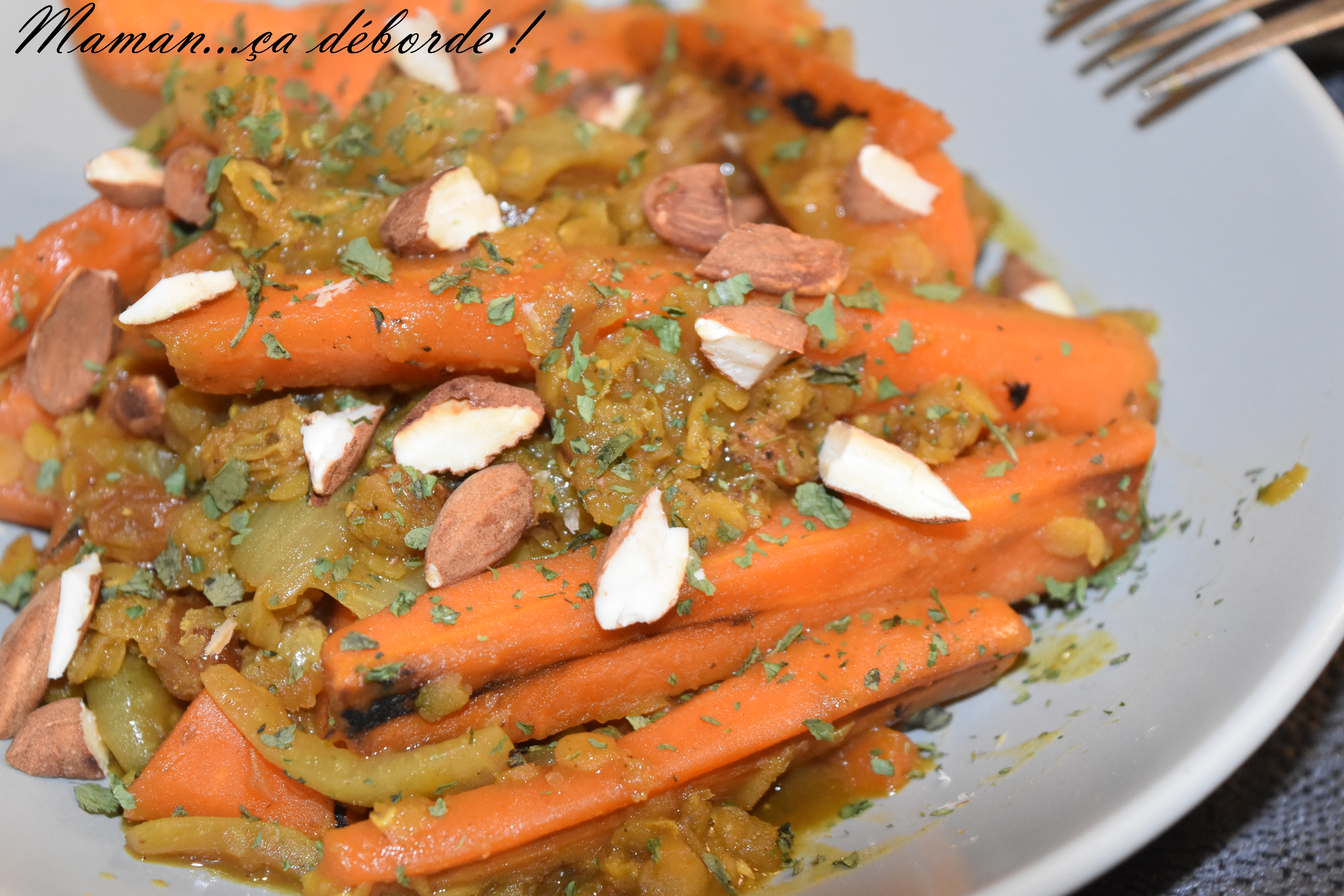 Hello ! Je suis archi-difficile niveau légumes, alors ma mère m’a expliqué que les carottes aux amandes était le plat parfait !
