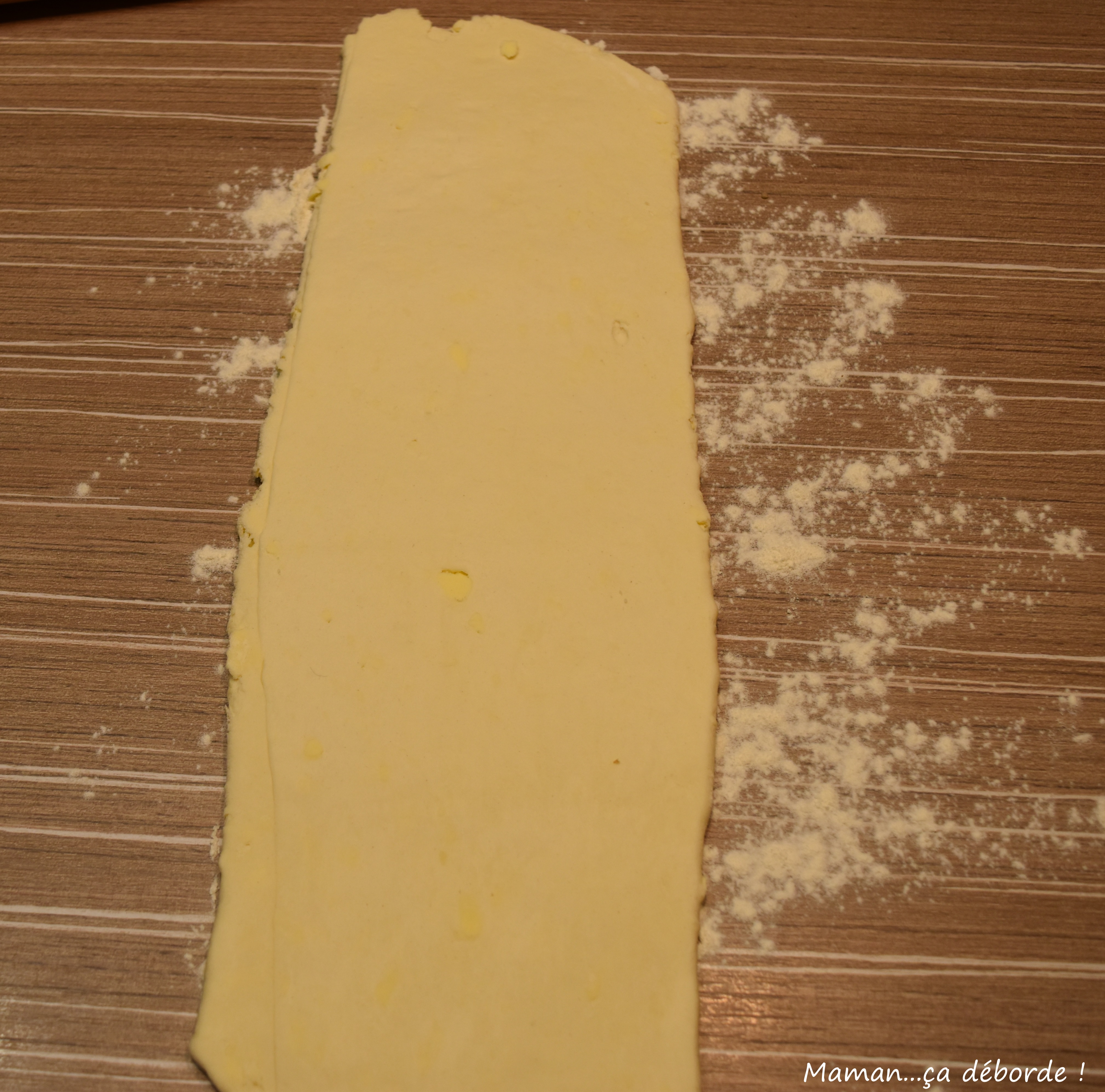 Amalgamez la pâte et étalez-la en un long rectangle