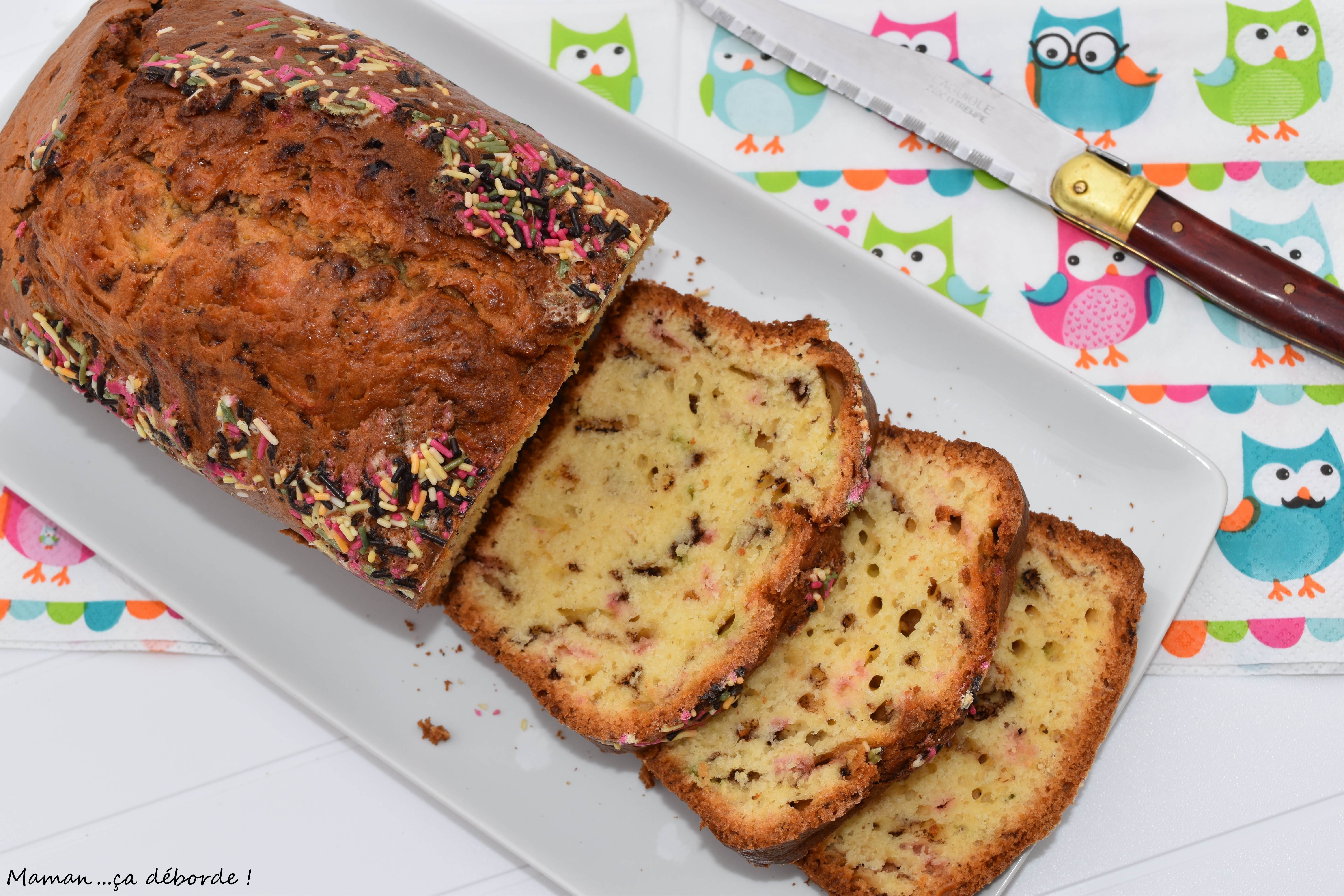 Mon home adore le gâteau au yaourt, et tu lui s donné un air bien festif avec tous ces vermicelles!