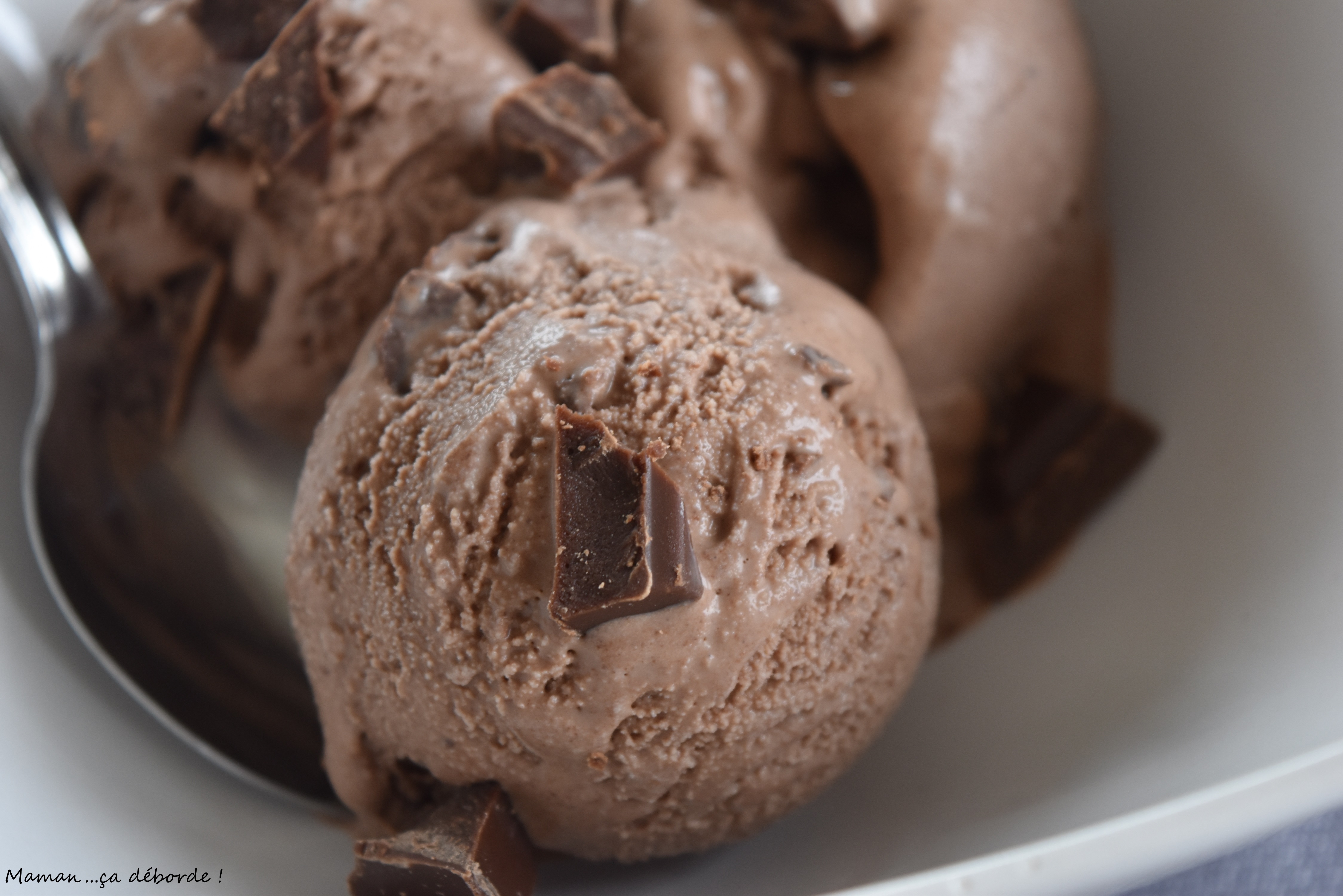 Elle donne envie cette glace au chocolat ! Avec les morceaux de chocolat, c’est encore plus gourmand ! J’adore ! 🙂 Merci pour cette découverte !