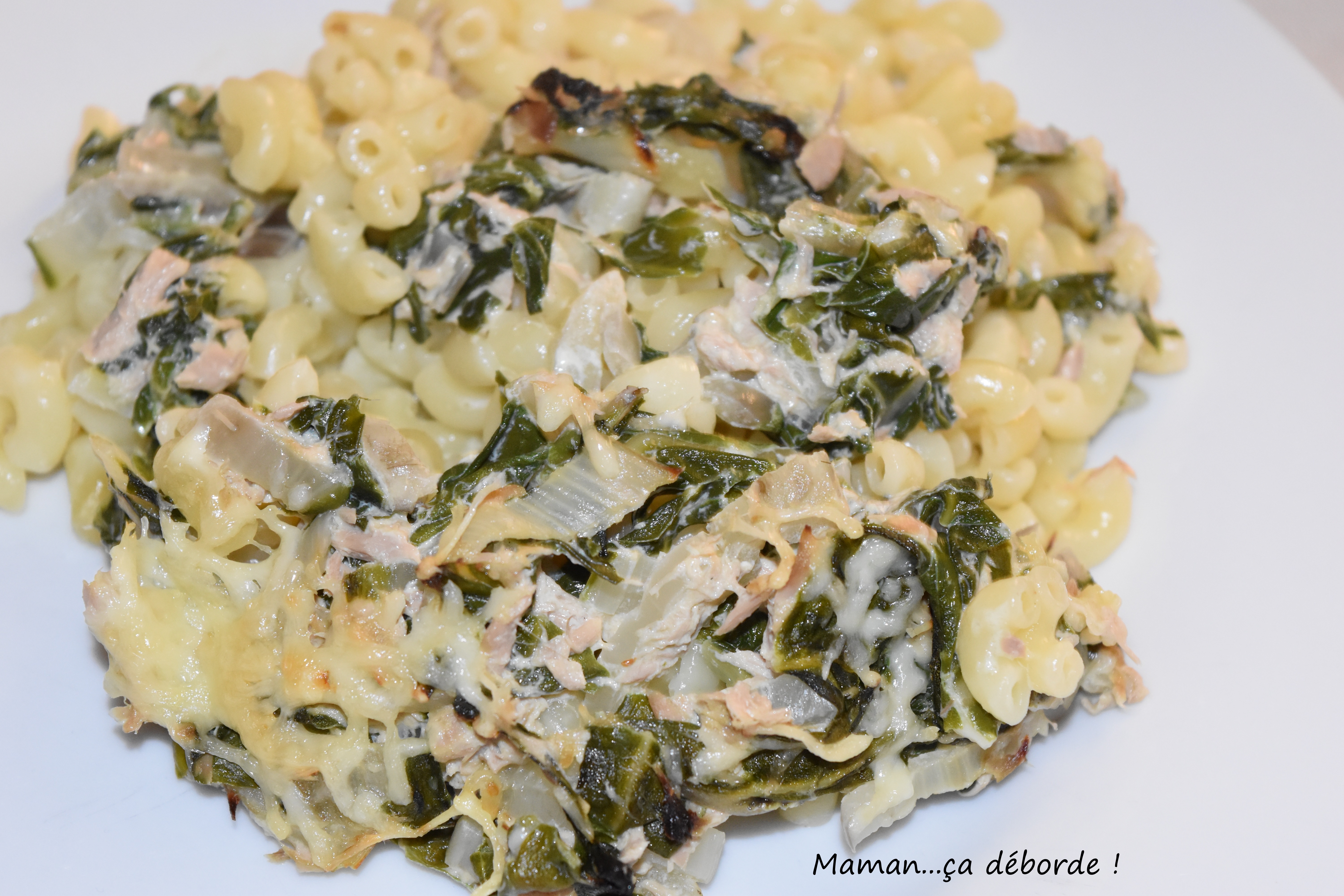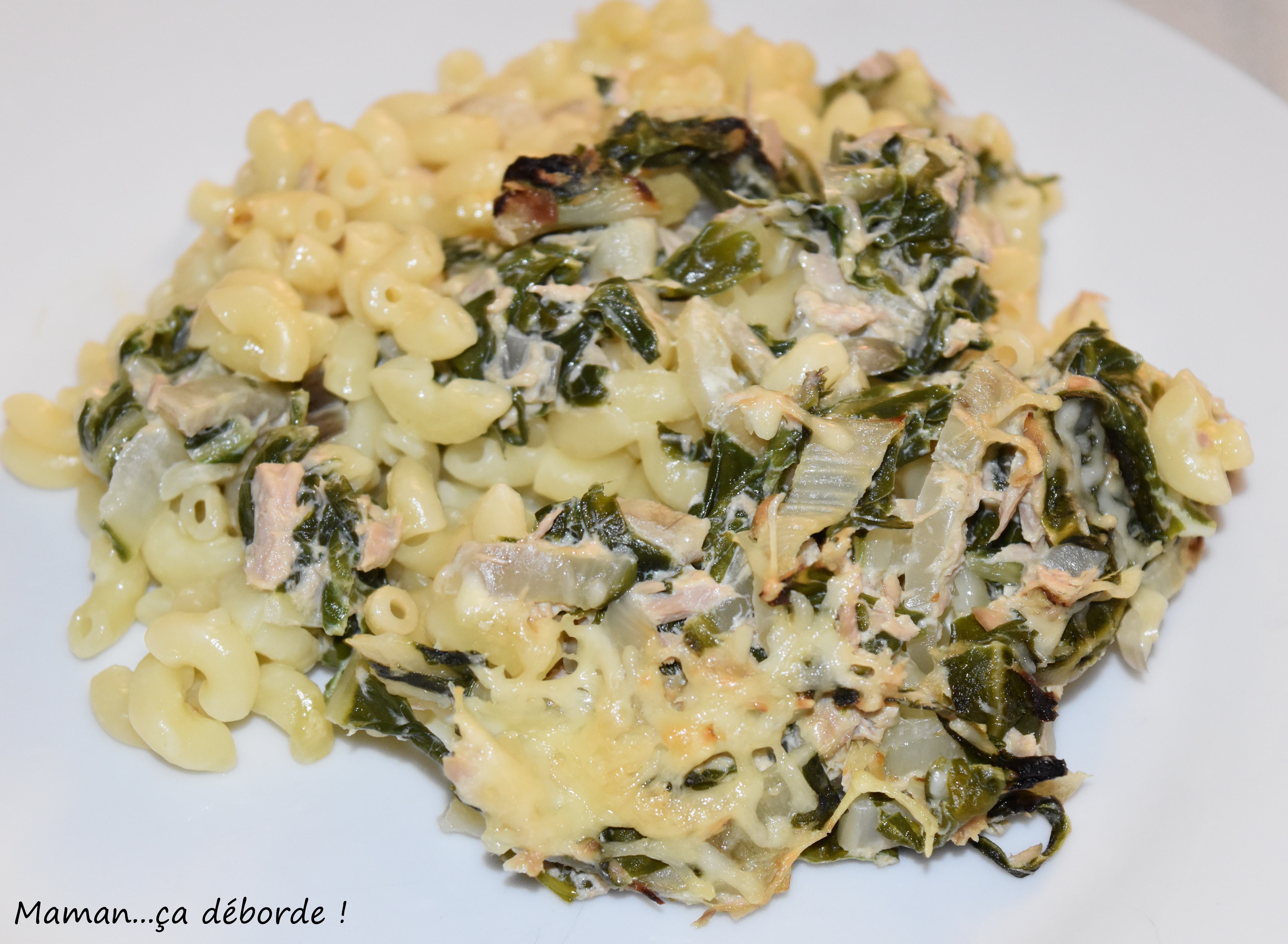 Nous avons apprécié ce petit gratin de pâte sauce blettes au thon bien crémeux et gouteux.