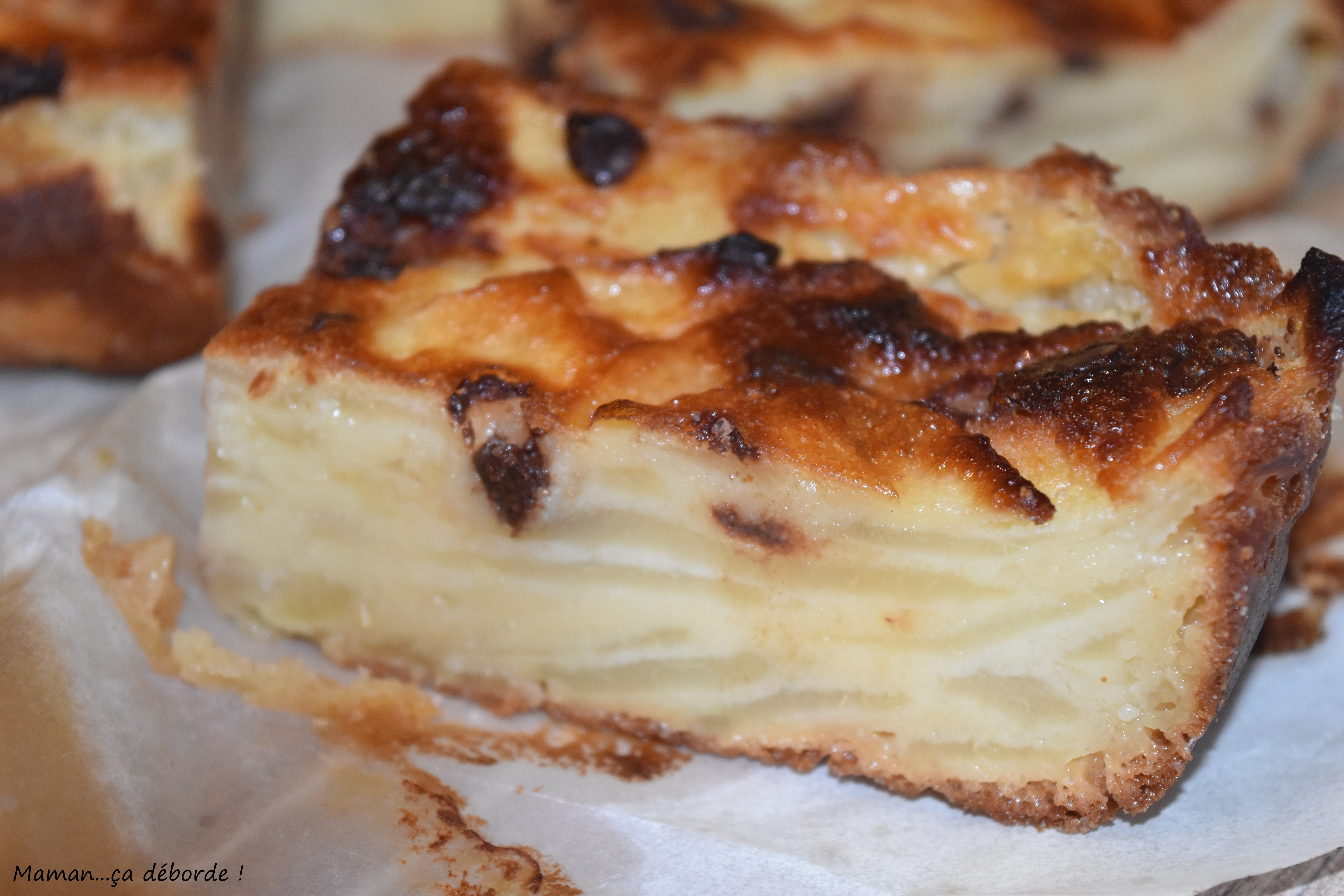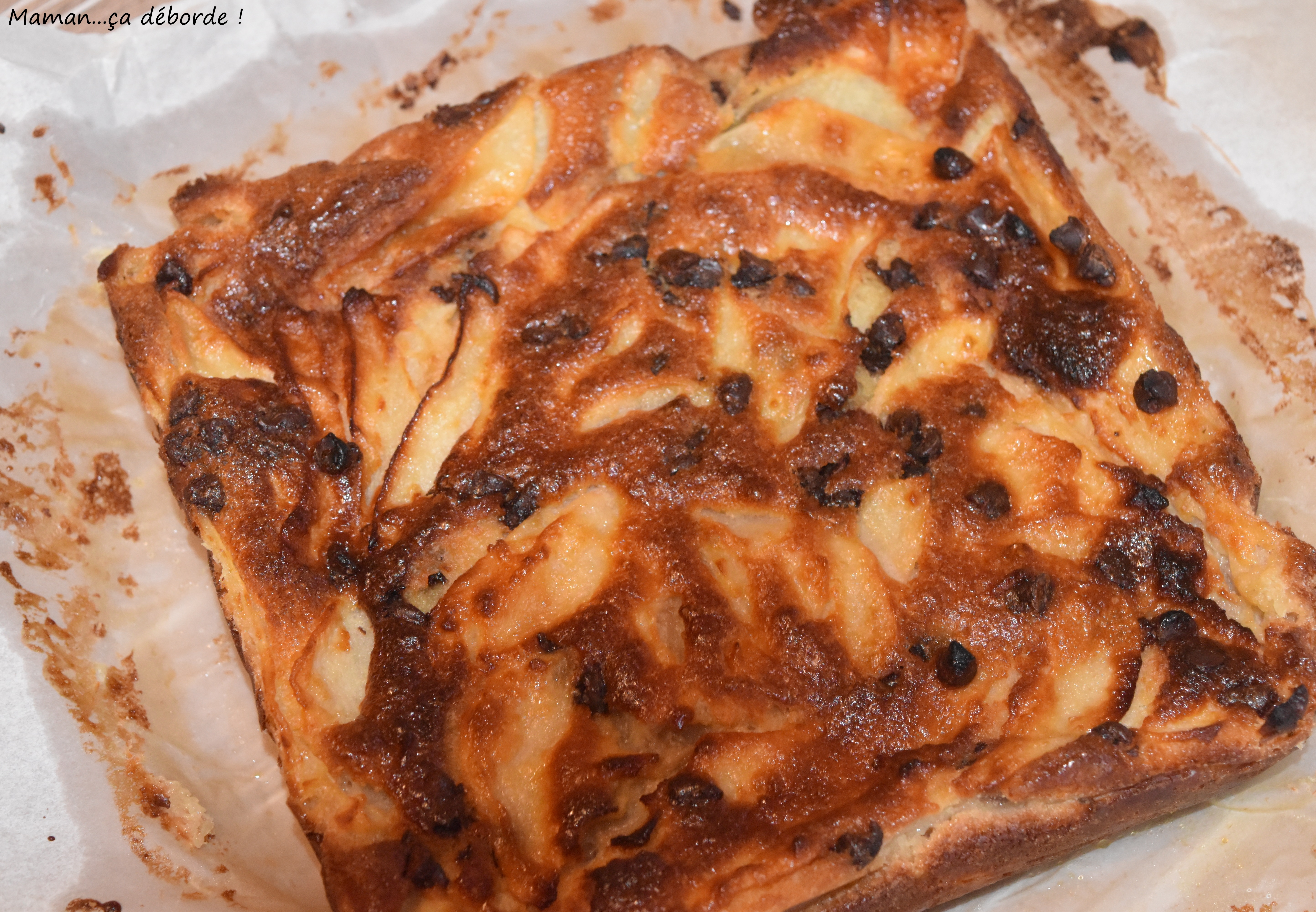 Après vous avoir présenté le gâteau invisible aux pommes, je vous présente une version plus gourmande puisque j’y ai glissé un peu de chocolat…que voulez-vous on ne se refait pas, gourmande un jour gourmande toujours…