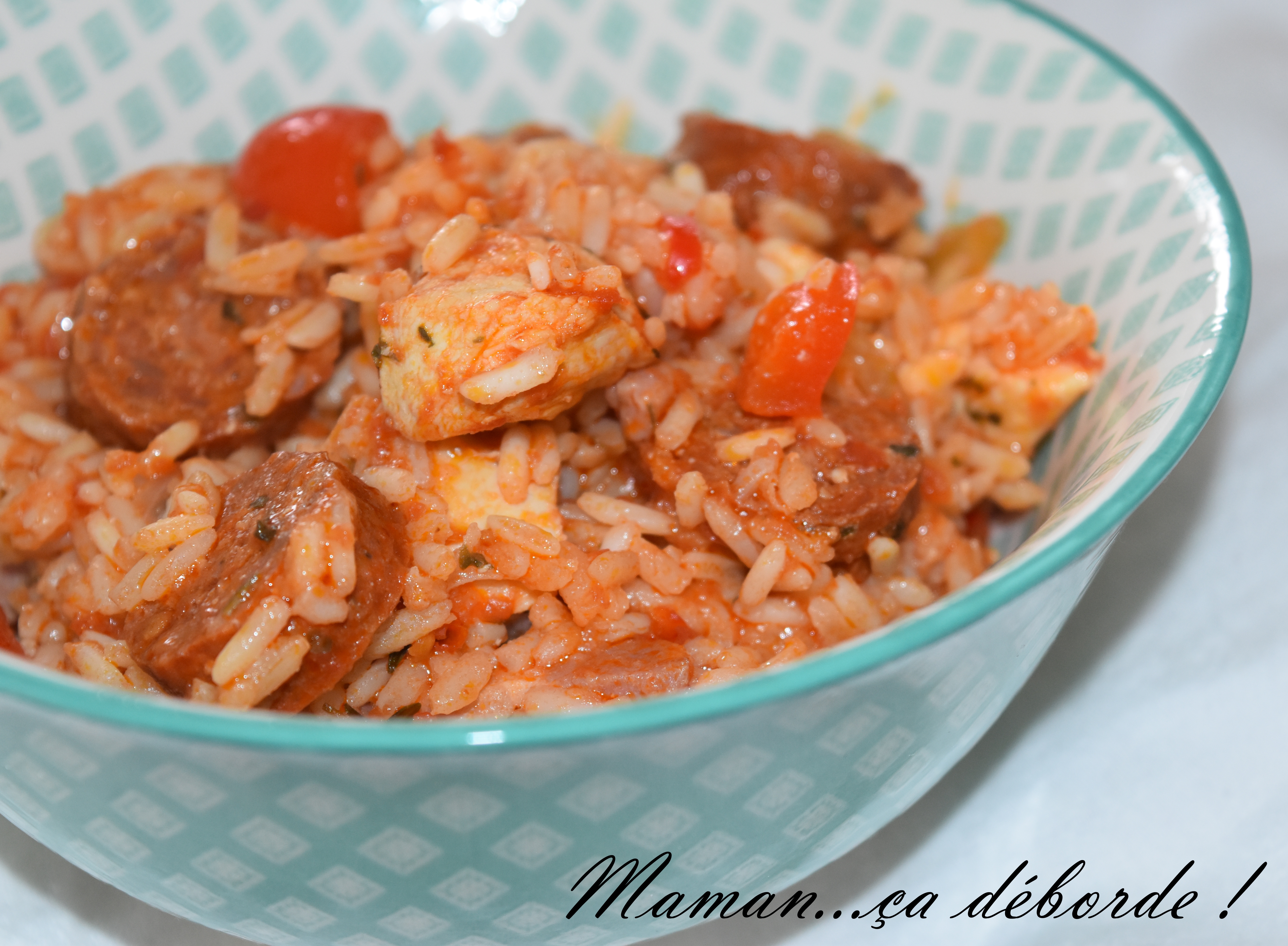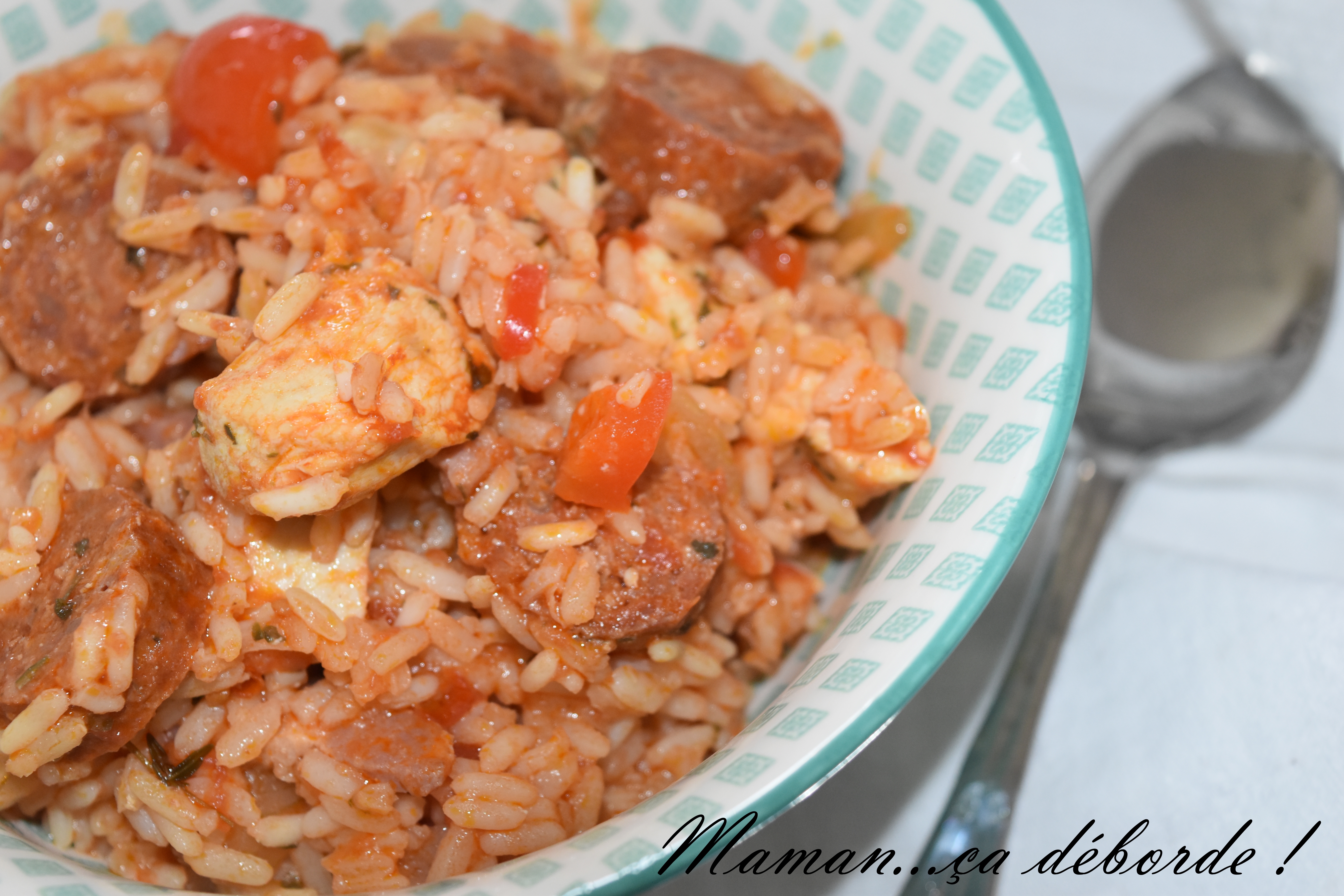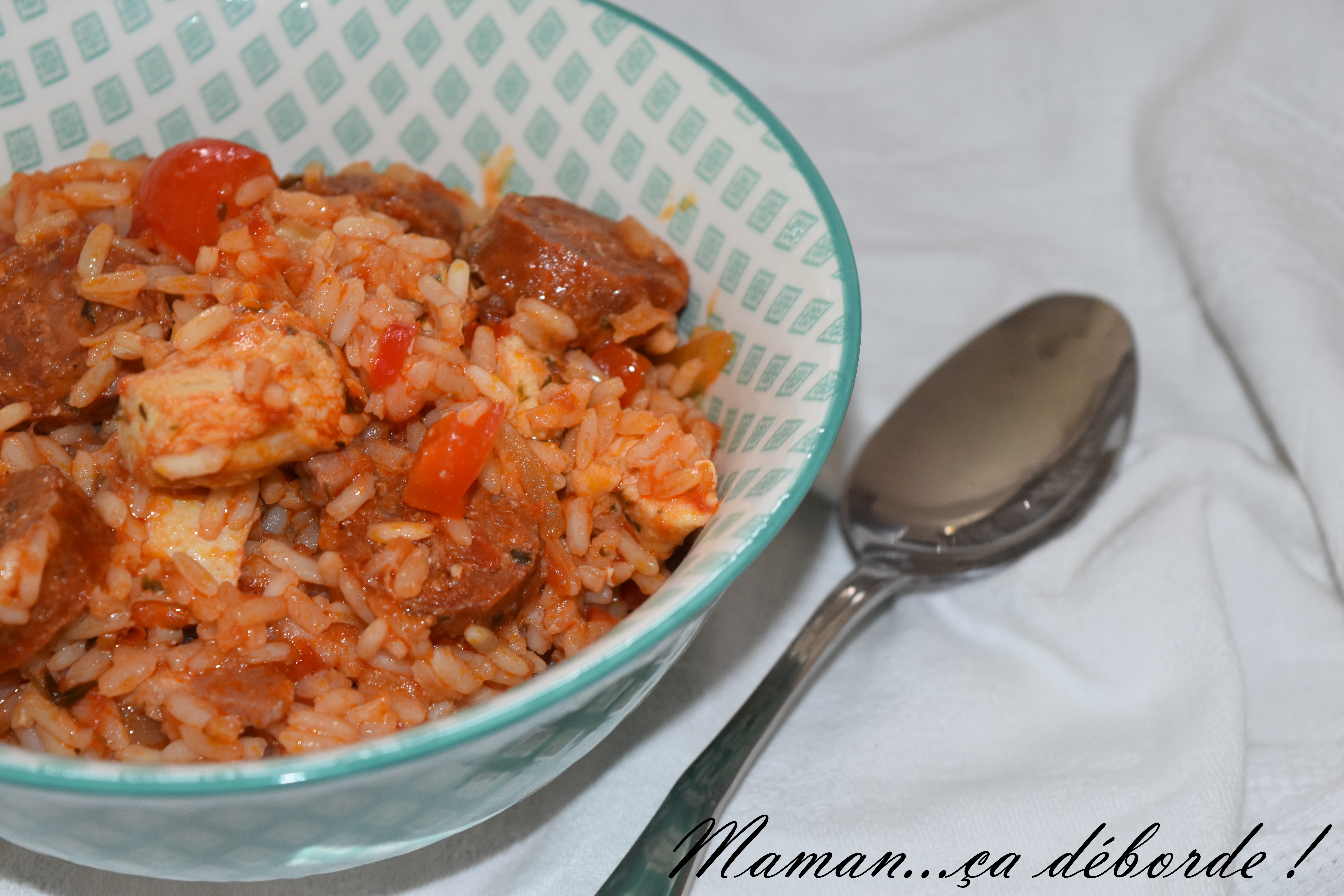 Cela fait des années que je n’en avais pas fait un seul et puis des invités à l’improviste pas trop le temps de réfléchir à ce que j’allais faire et pas envie de passer des plombes en cuisine ni de ne pas profiter de mes invités et hop…comme une évidence le jambalaya est apparu !