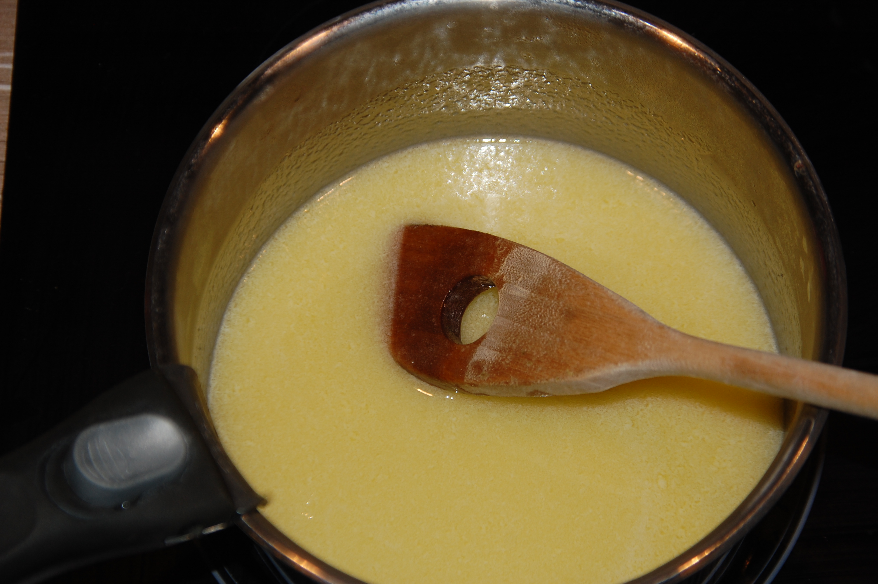 Quand le beurre est fondu, retirer du feu et laisser refroidir. Compter environ 15 min en remuant de temps en temps pour éviter que le beurre ne se fige.