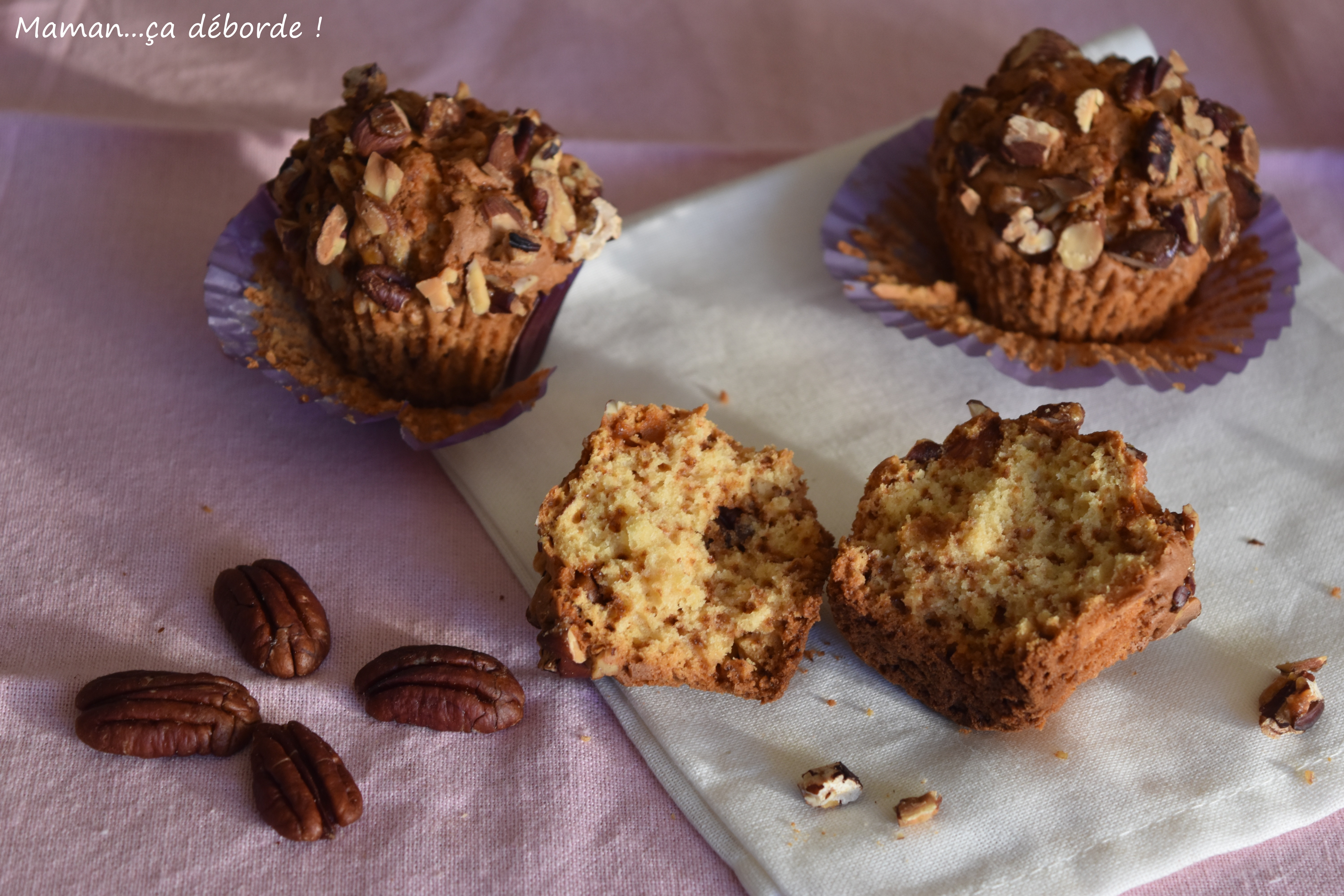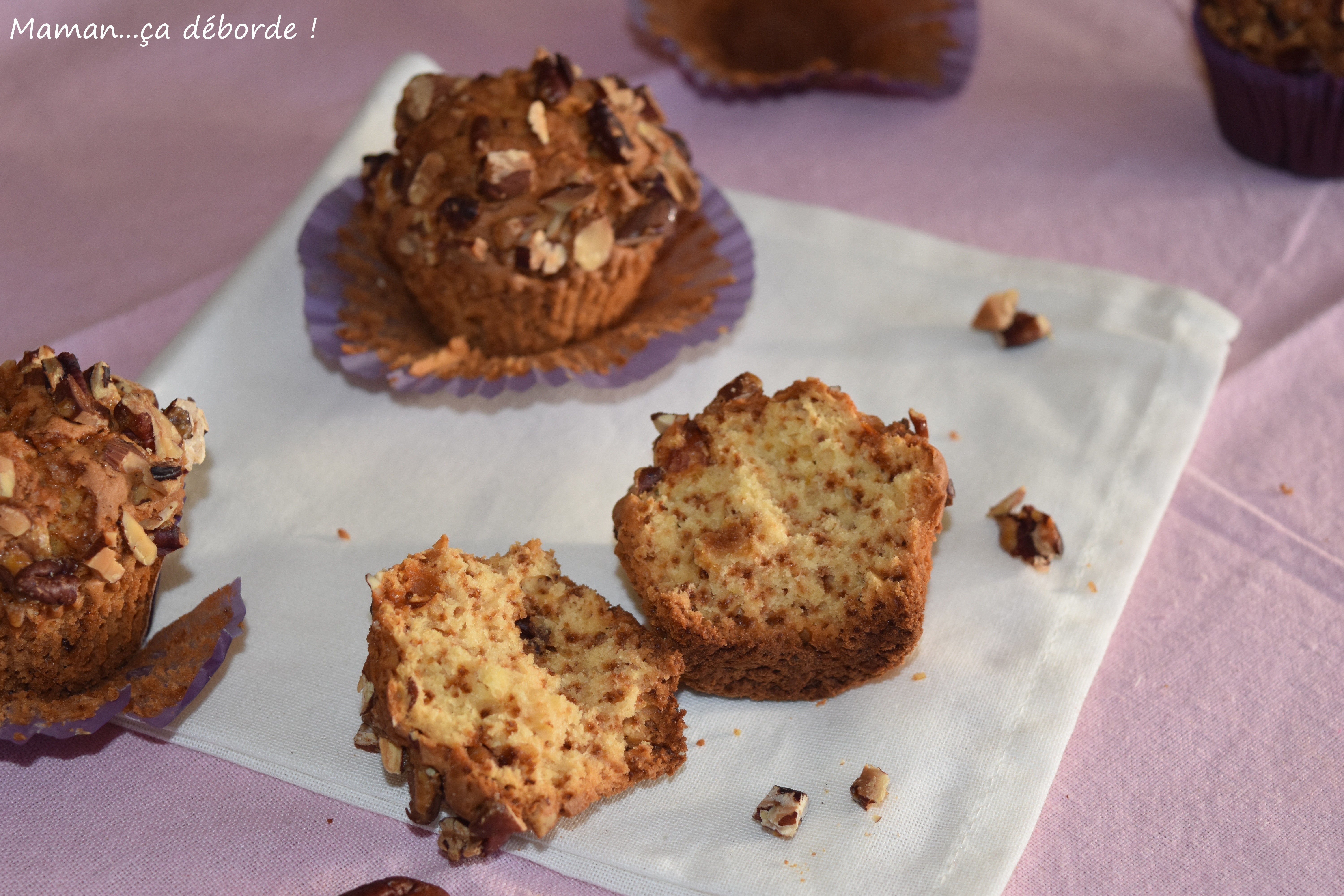 Puis parsemez chaque muffin de noix de pécan caramélisées.