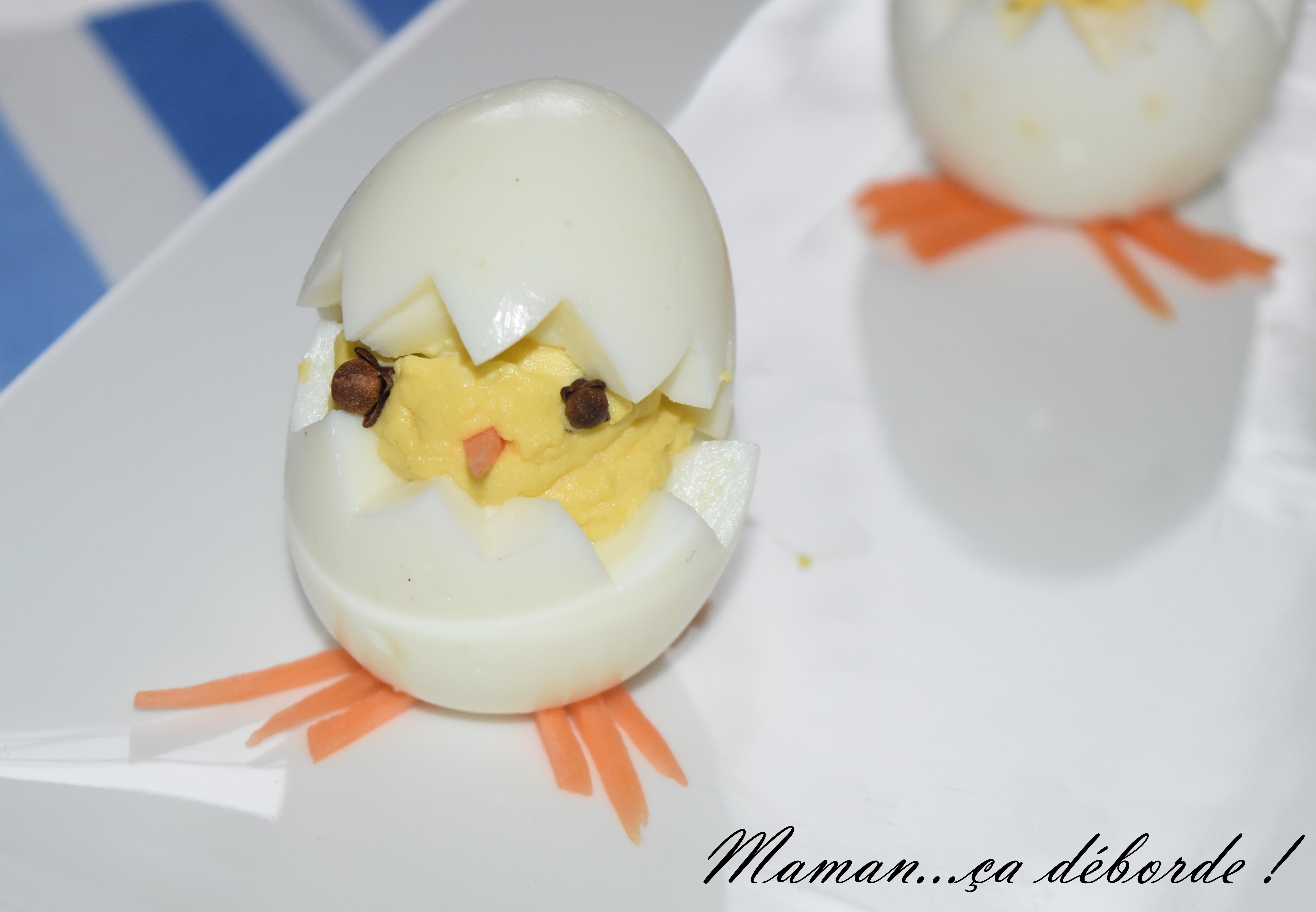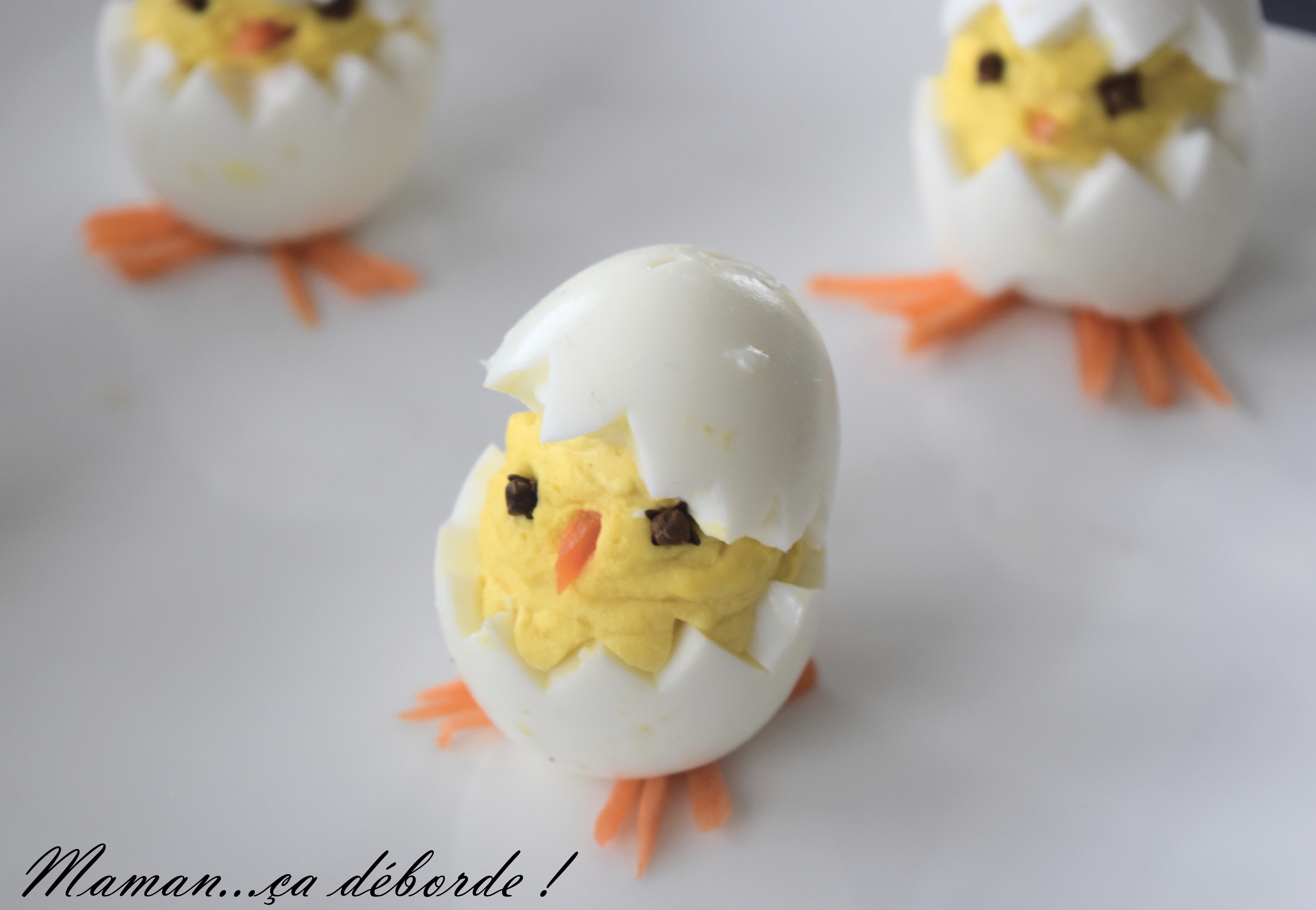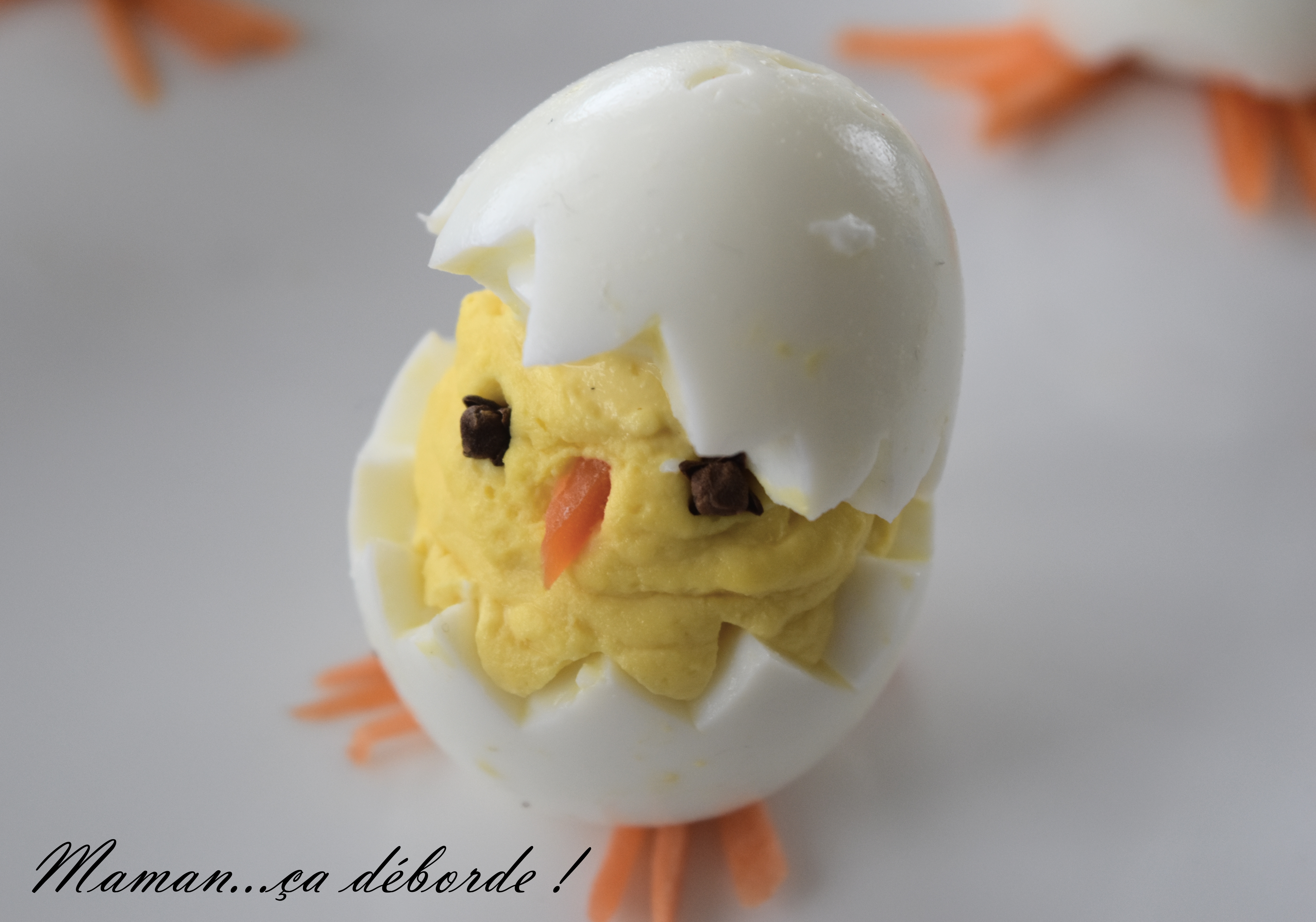C’est une entrée que vous connaissez tous mais que j’ai voulu revisiter cette année pour Pâques en transformant l’oeuf mimosa en poussin tout mimi !