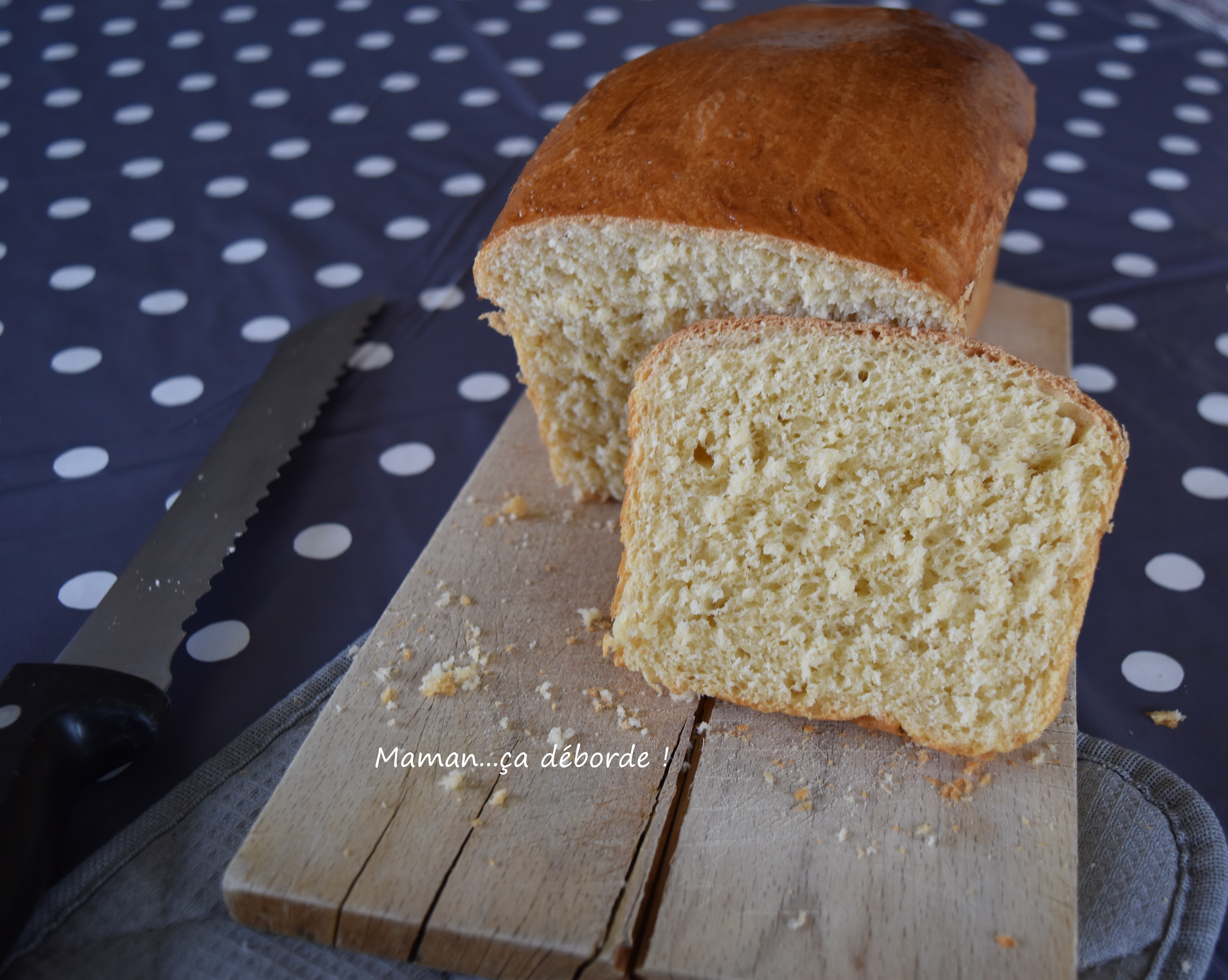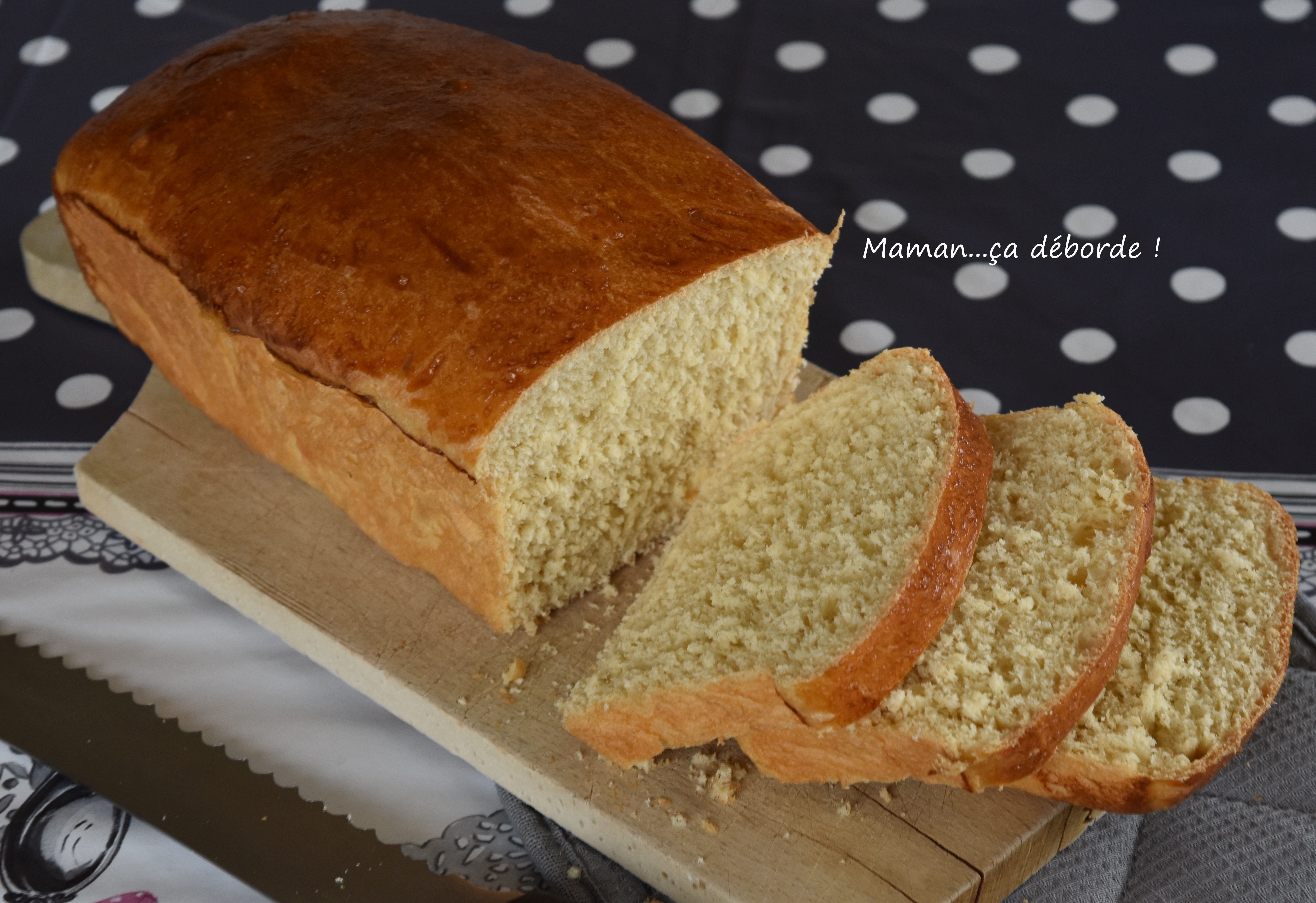 Ce pain de mie est moelleux à souhait et peu sucré. Vous pouvez donc le servir au petit déjeuner tartiné de confiture ou de pâte à tartiner ou encore comme support de toast salé.