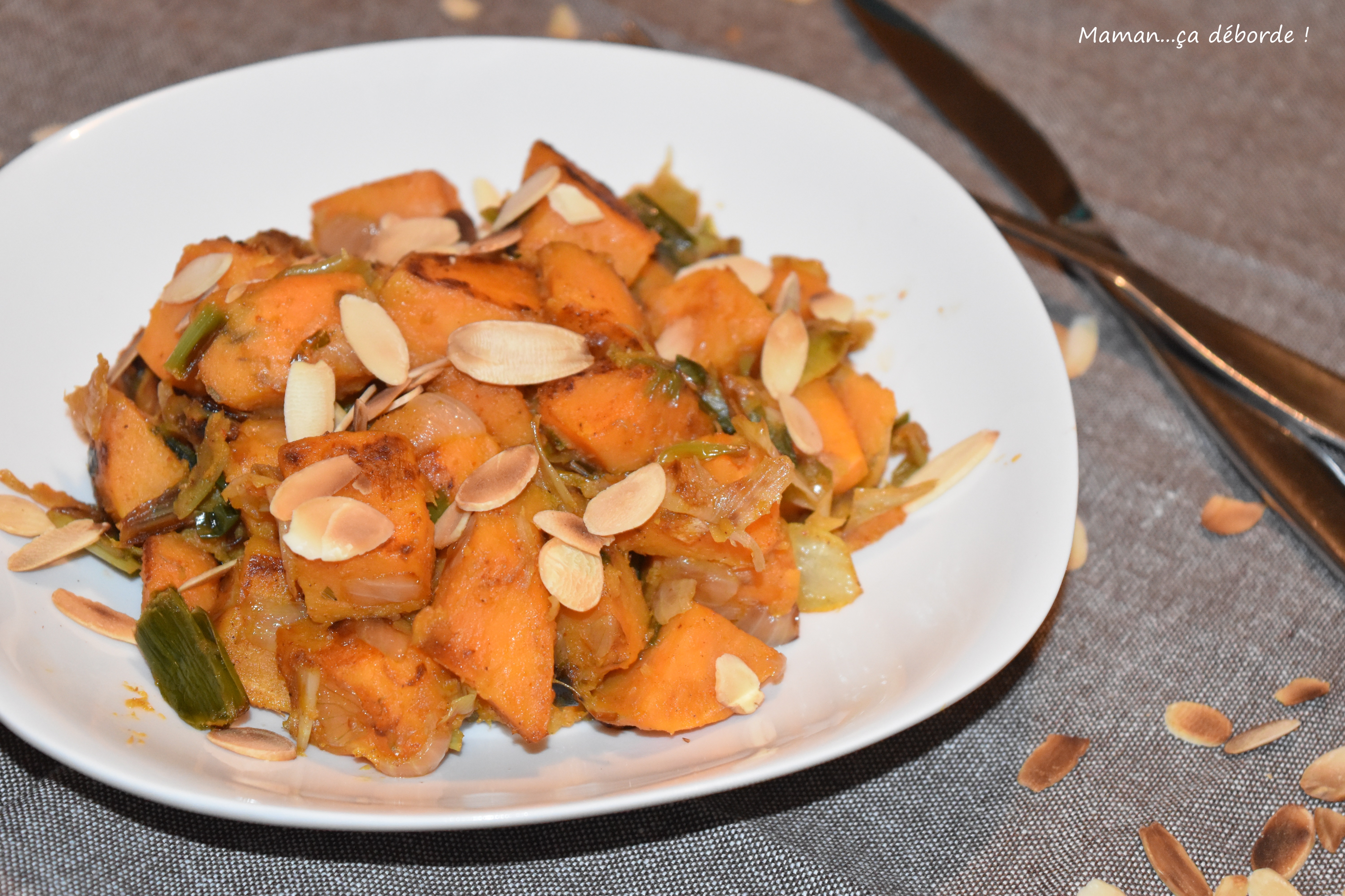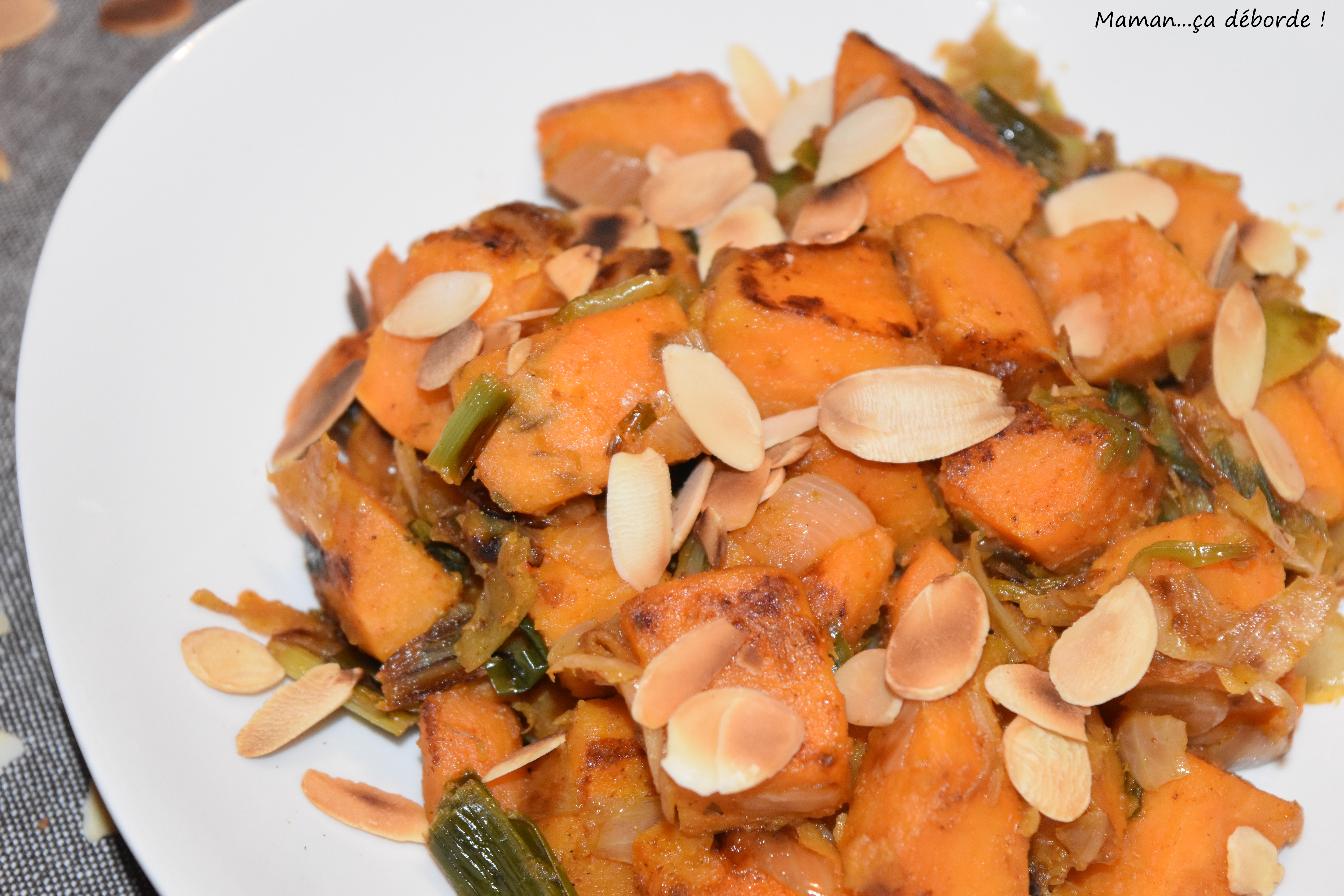 Le poireau relève à merveille les patates douces et contrebalance le côté sucré de cette poêlée…bref ces patates douces caramélisées m’ont totalement séduite et mon petit mari n’a pas boudé son plaisir non plus !