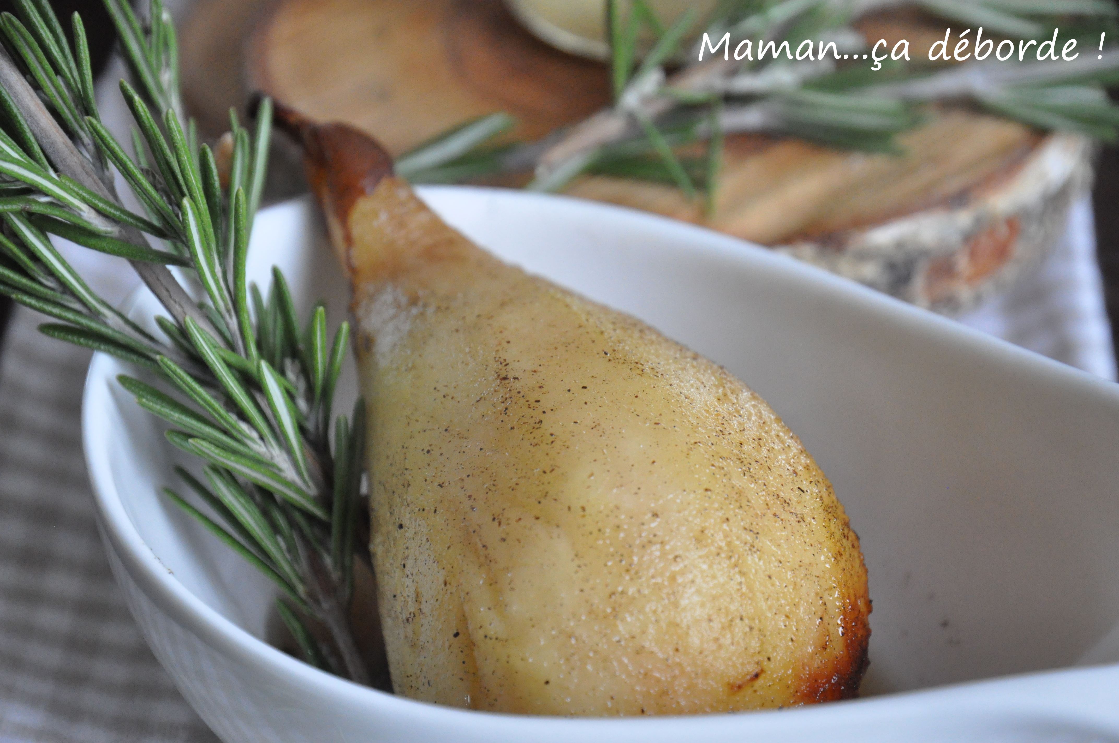 Mais revenons à la recette de la poire rôtie au confit de romarin.