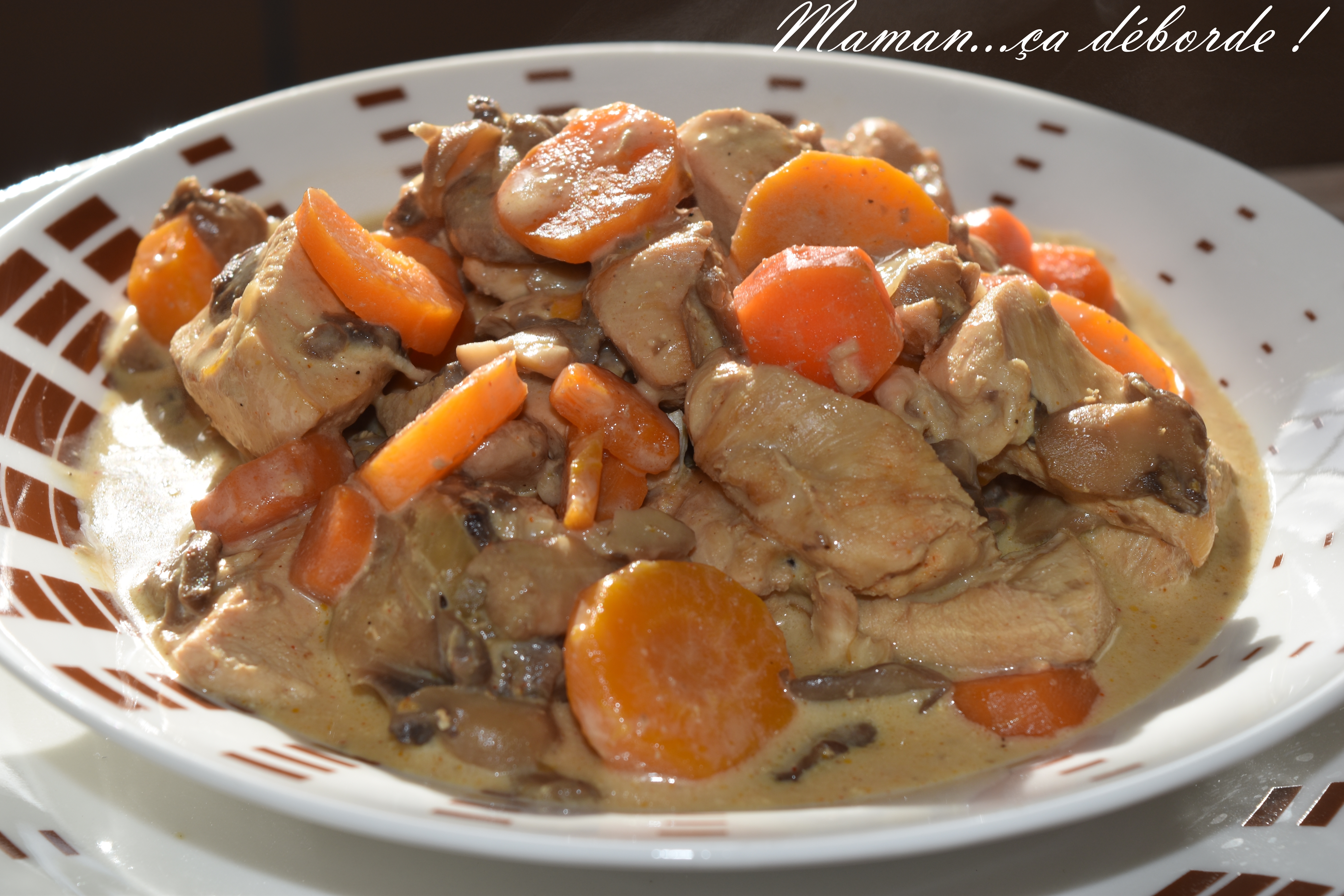 Des carottes dans le frigo, du poulet et des champignons au congélateur. Il n’en fallait pas plus pour m’inspirer ce plat !