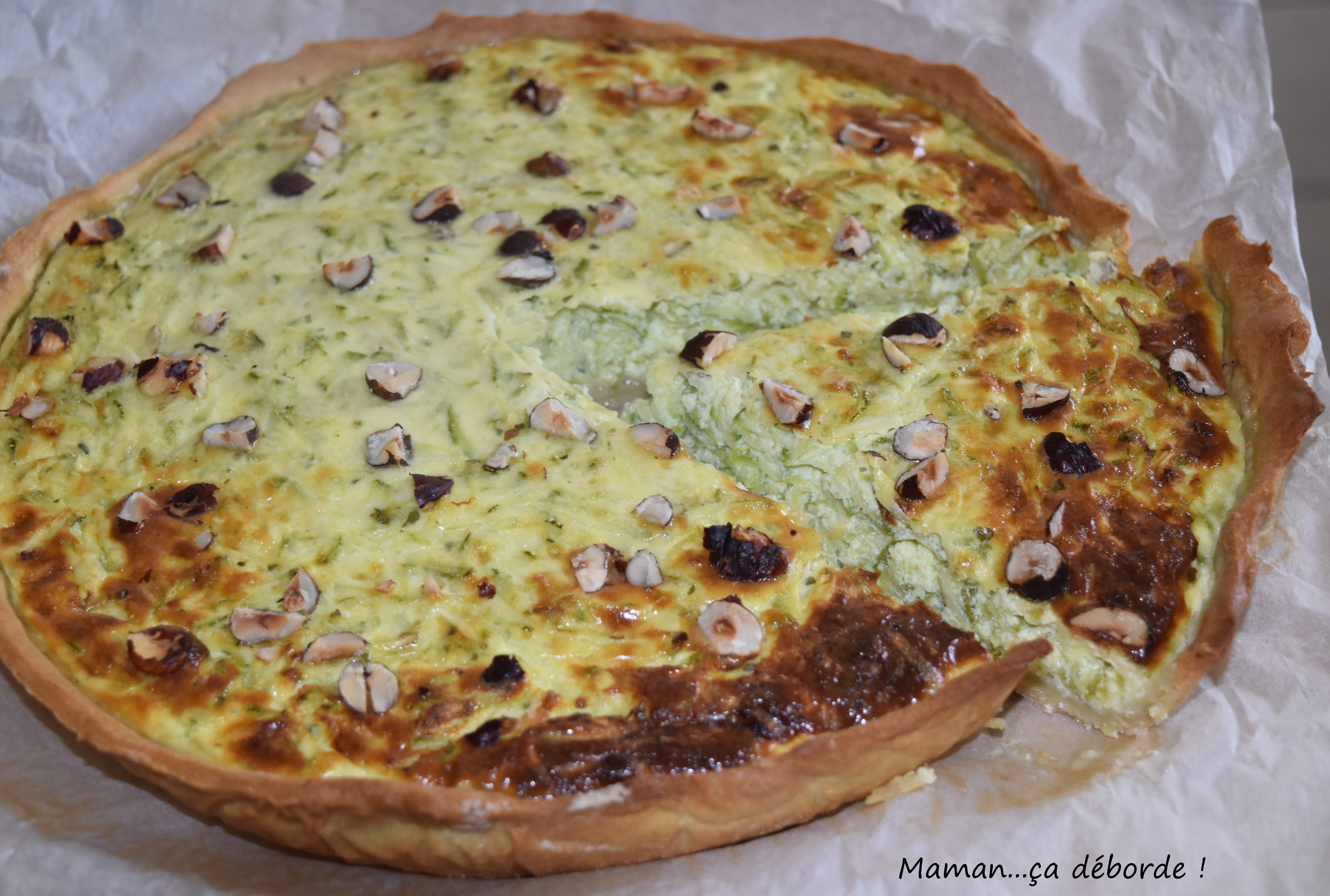 Hachez grossièrement vos noisettes puis parsemez la quiche.