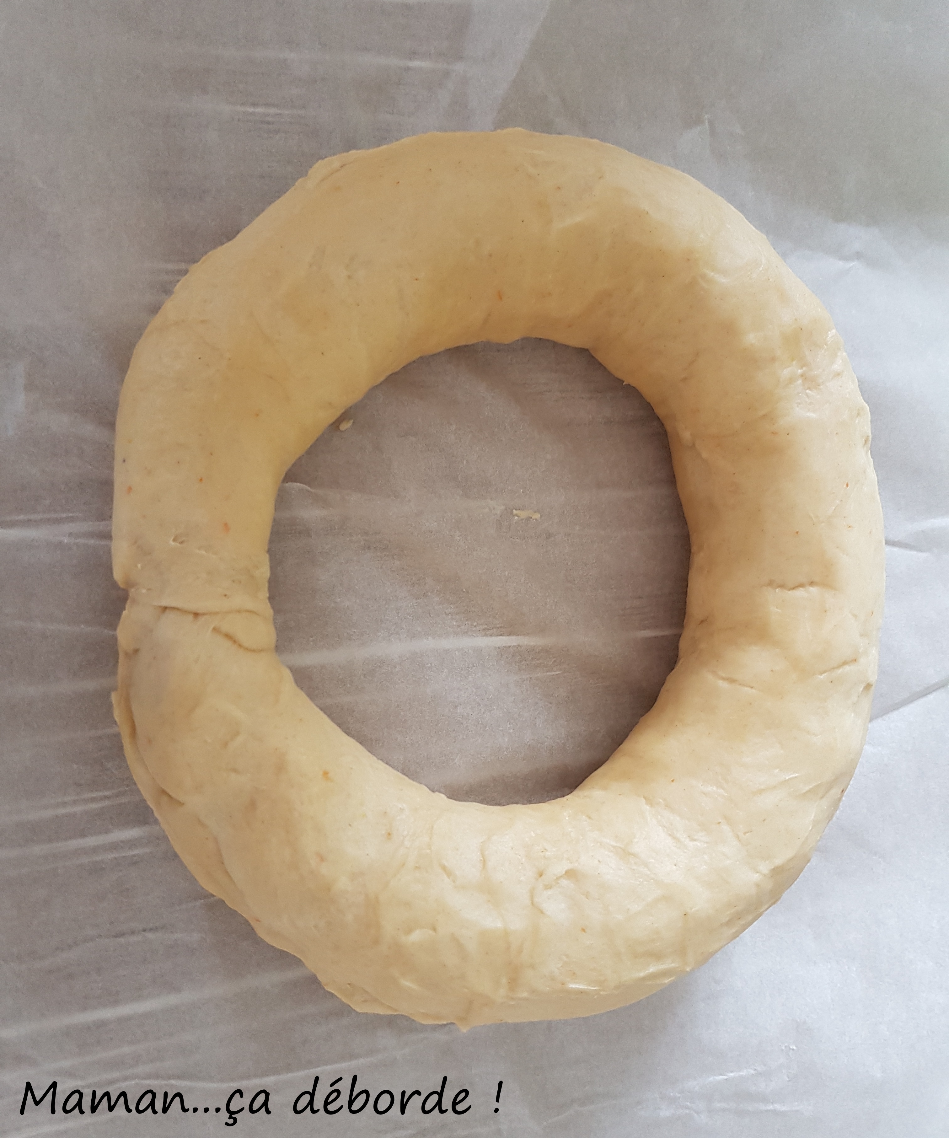 Roulez la pâte pour obtenir un long boudin puis formez une couronne. Scellez les deux extrémités.