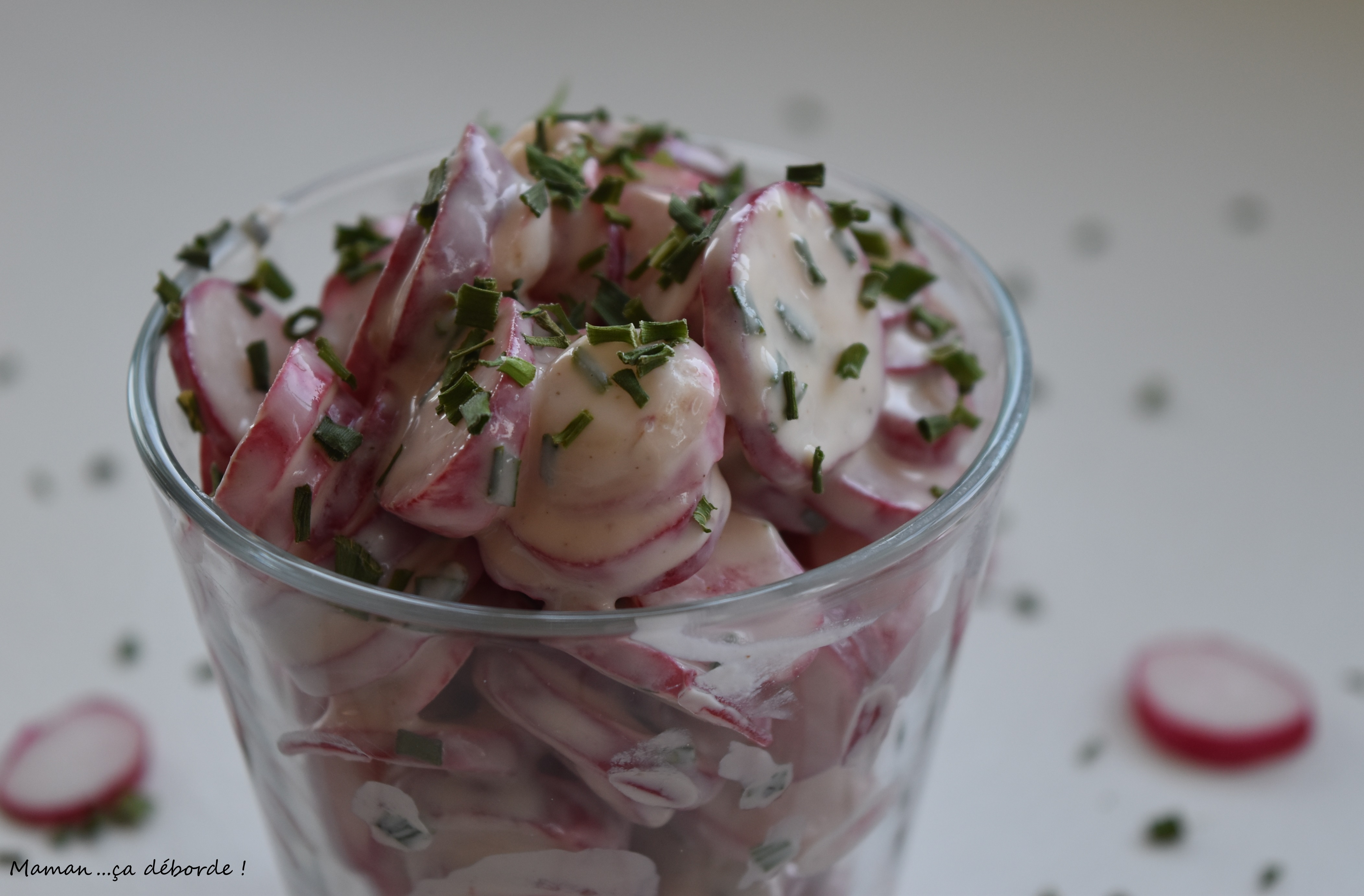 Je me suis alors rappelée que j’avais vu une bonne petite salade de radis chez Julia du blog Cooking Julia avec une sauce qui me paraissait bien crémeuse.