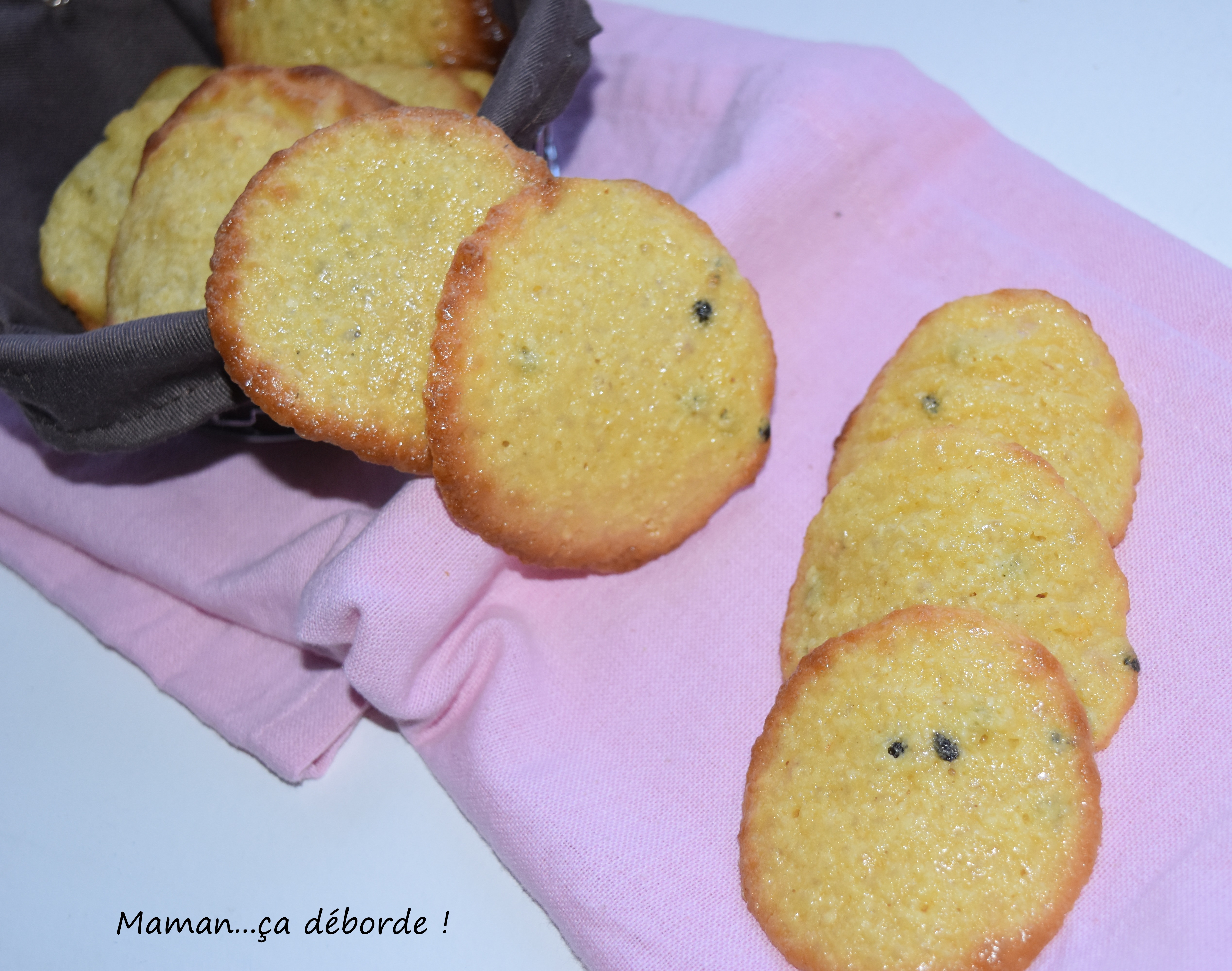 Ces tuiles aux fruits de la passion sont mon coup de coeur du moment que je dois à mon amie Claudine du blog La Cuisine de Gut.